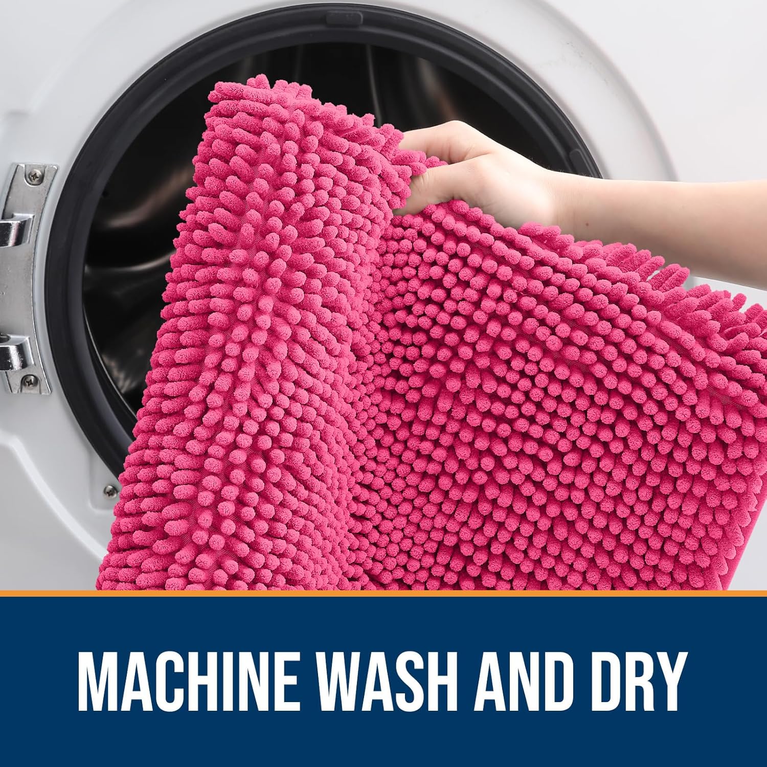 OLANLY Dog Door Mat for Muddy Paws 40x32, Absorbs Moisture and Dirt, Absorbent Non-Slip Washable Doormat, Quick Dry Chenille Mud Mat for Dogs, Entry Indoor Entryway Carpet for Inside Floor, Hot Pink