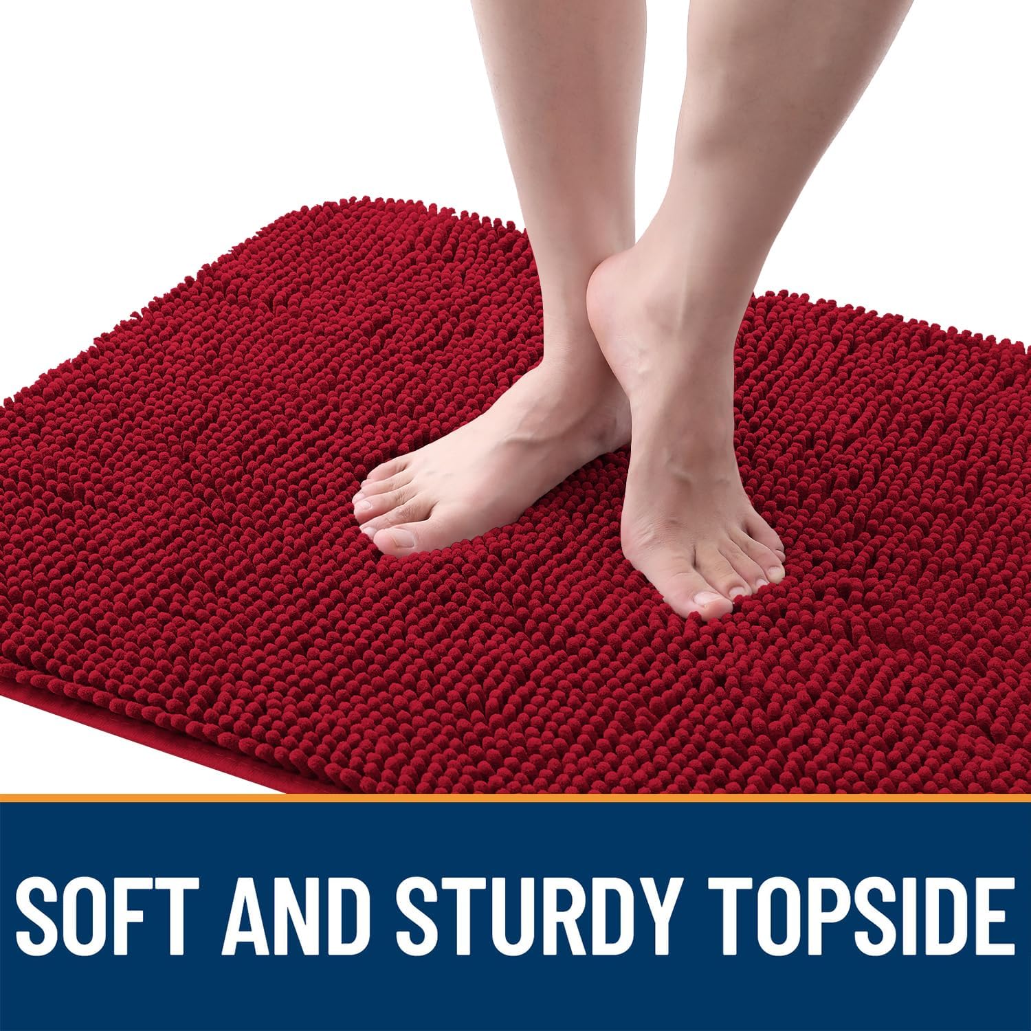 OLANLY Dog Door Mat for Muddy Paws 47x32, Absorbs Moisture and Dirt, Absorbent Non-Slip Washable Doormat, Quick Dry Chenille Mud Mat for Dogs, Entry Indoor Entryway Carpet for Inside Floor, Red