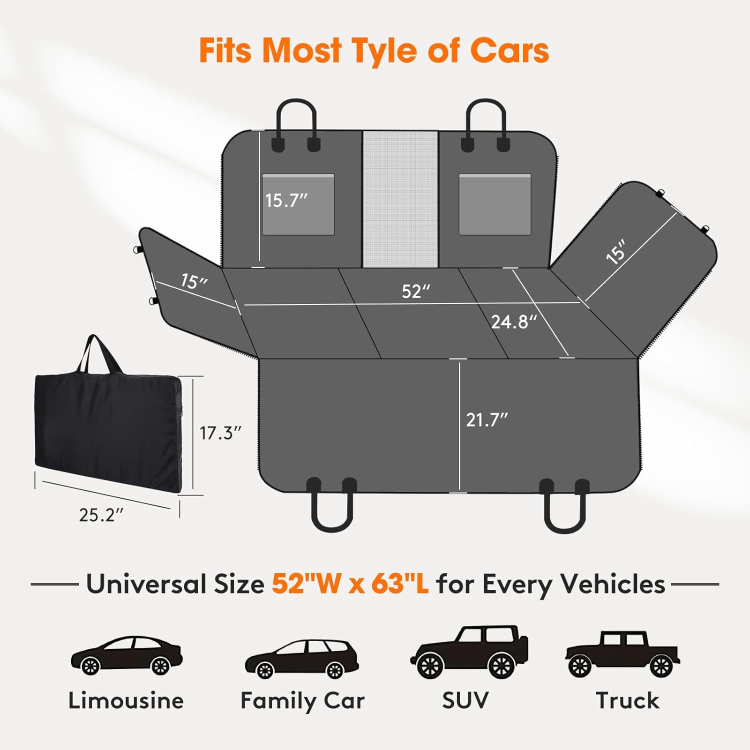 - ăMultifunctional Seat CoverăWhen you get the MIXJOY Upgraded dog seat cover, you will enjoy this 4 styles and also helps to protect the leather seat. It can also serve as a sleeping pad or for other uses. Can be easily converted dog hammock style, cargo liner style, picnic seat cover blanket. And the universal size of 52"W x 63"L back seat dog cover for car to be used in family cars, trucks and SUVs.The back seat protector for dog is great gifts for every pet lover.