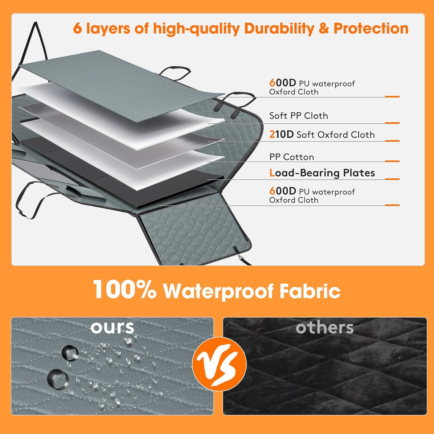- ă6-Layer Durability & ProtectionăNo more slouchy dog seat covers! Unlike the traditional seat cover being soft and easy to collapse, it can hold up a weight capacity of 280 lbs, making it suitable for various dog sizes! The 52"W x 63"L backseat seat covers for cars uses the new upgraded fabric of 6-layer fabrics, this dog back seat cover is waterproof to protect your seat from mud, liquid, and hair.