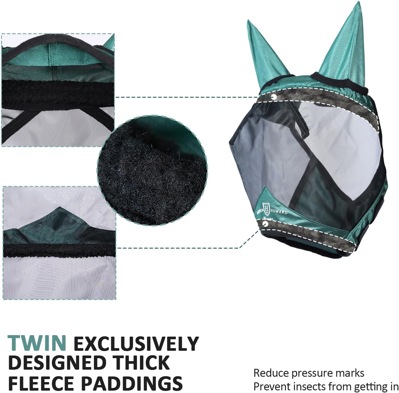 Harrison Howard Pro Luminous Horse Half Face Fly Mask Large Eye Space with Ears UV Protection for Horse Hunter Green S