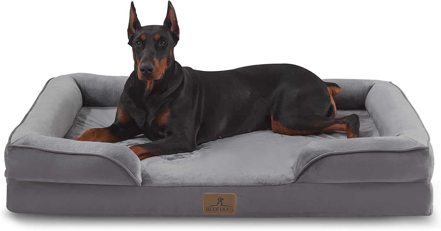 Bedfolks Orthopedic Dog Bed, Waterproof Dog Sofa Bed for Extra Large Dogs, Egg Foam Pet Couch Bed with Removable Washable Cover and Nonslip Bottom, Dark Grey