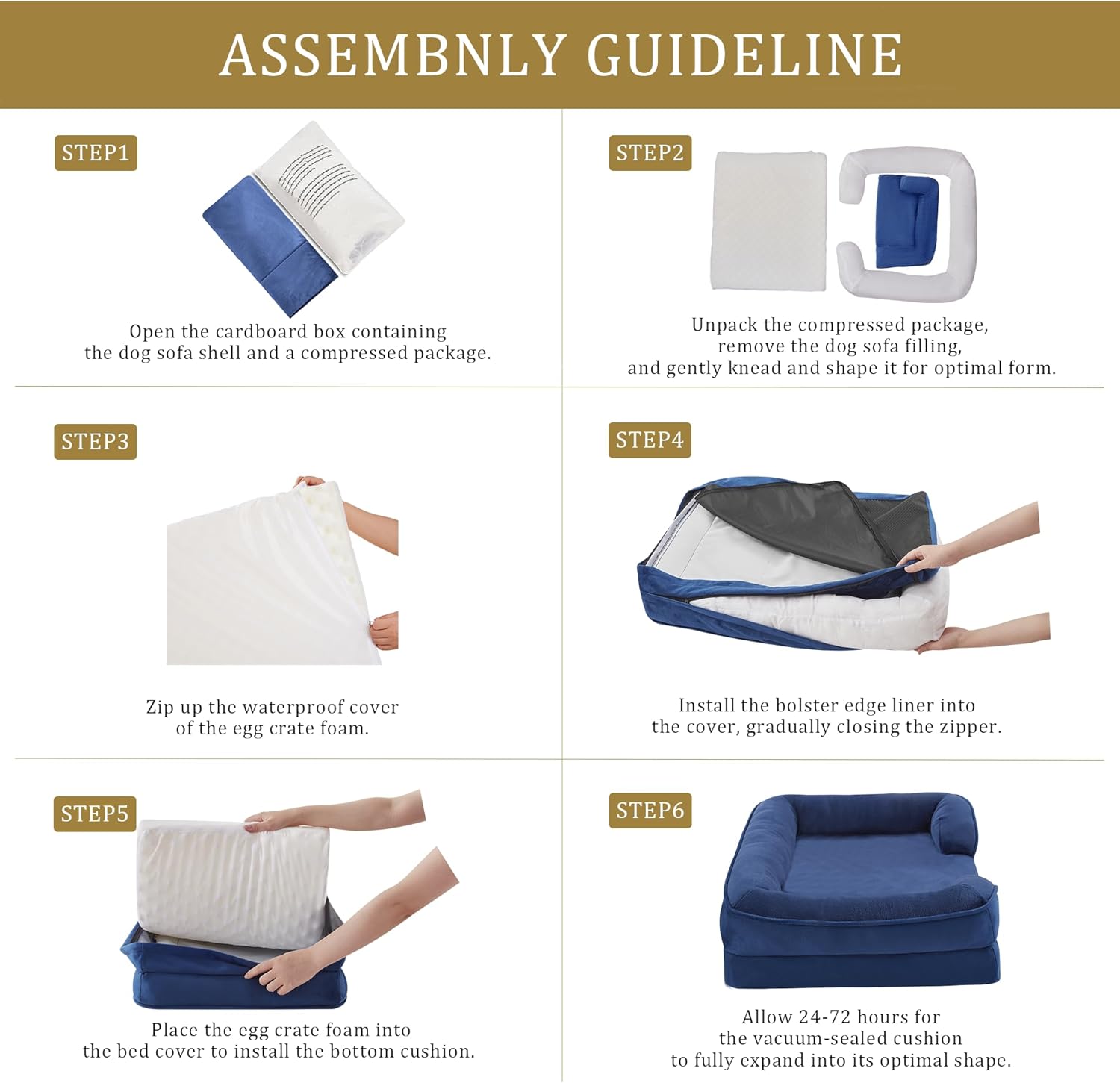 - Suitable Size: Suitable for All Breeds: 38"W x 28"L x 6.5"D; Sleeping surface: 30.5"W x 24"L (Up to 70lbs); When selecting the product size, please pay attention to the sleeping area. Please wait for 48 hours for full expansion to ensure optimal height and comfort before using.