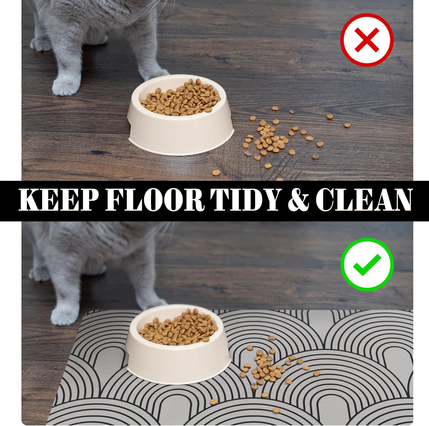 - Versatile Usage: The leak-proof dog feeding mat protect your floor from being corroding by spilled water, it also could be cat litter mat, dog water dispenser mat, pet sleeping mat.