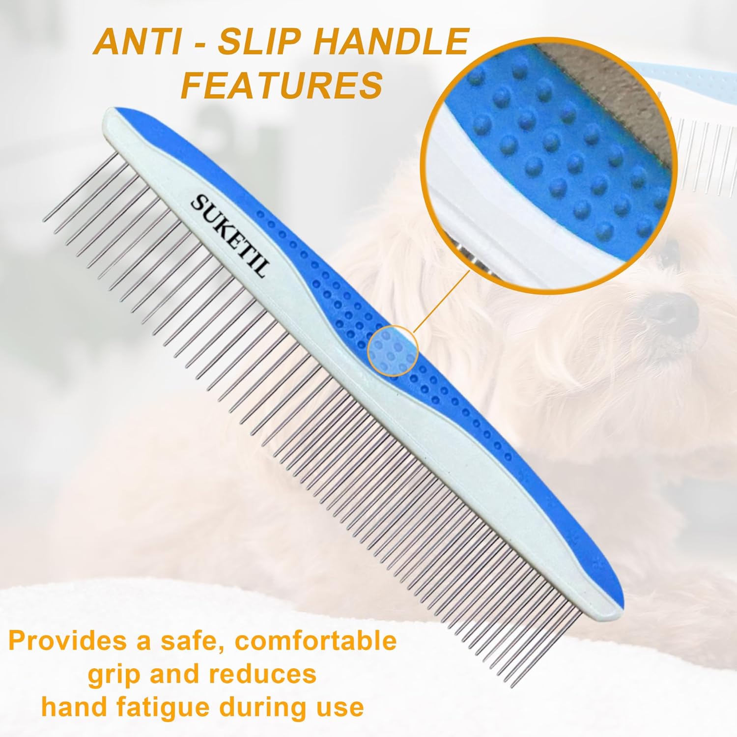 - EFFECTIVE AND SAFE: The comb teeth are designed to effectively remove loose hair, dirt, and tangles without causing discomfort. It serves as both a shedding comb for dog hair comb and a matted fur remover for cats, ensuring safe and gentle grooming sessions for pets with sensitive skin.