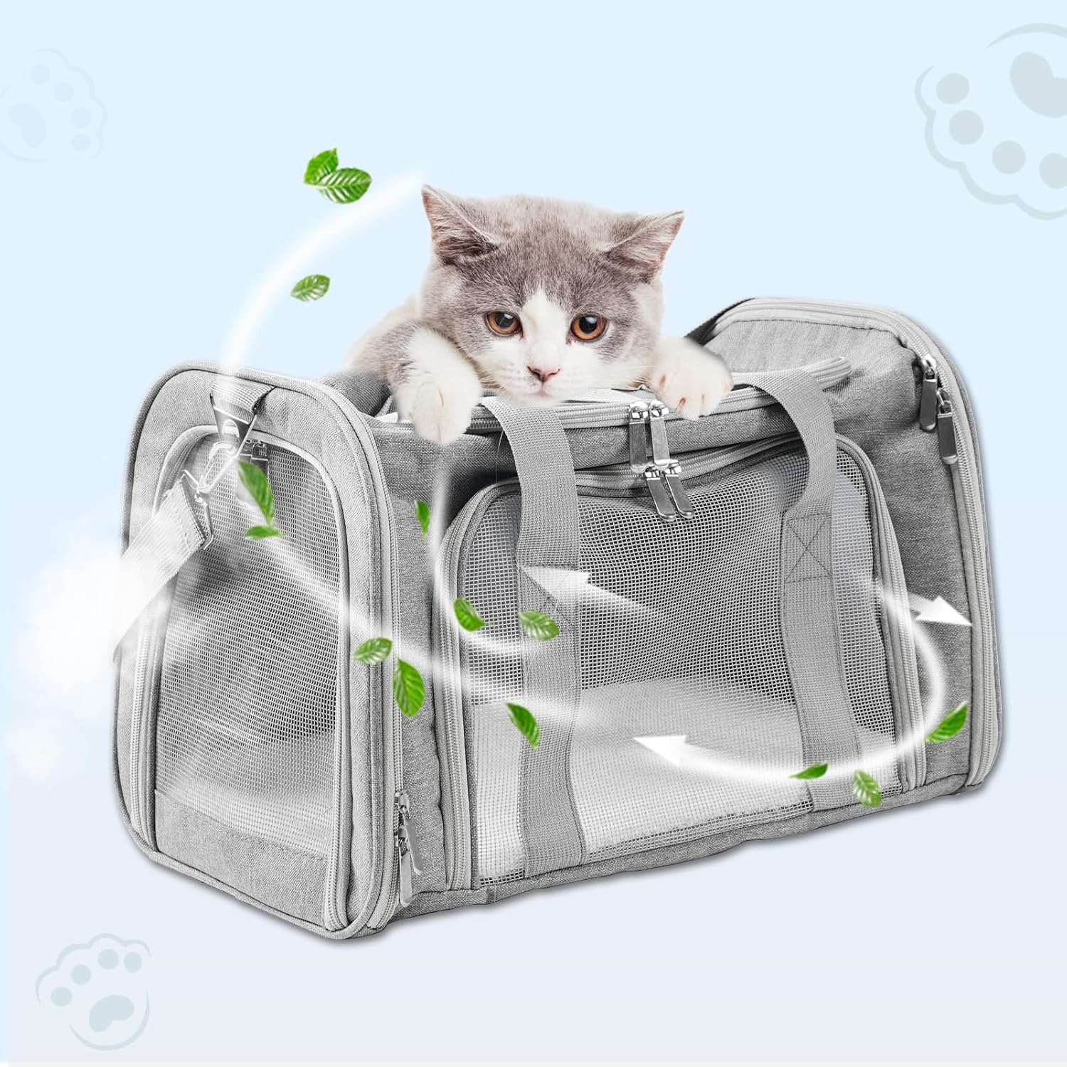 - Cozy Comfort for Your Pet: Soft-Sided Pet travel Carrier prioritizes your pet's comfort with its plush padded interior and breathable mesh panels. Designed to provide a cozy and inviting space, your furry friend will feel relaxed and secure throughout the journey. Say goodbye to travel stress and hello to happy travels with our comfortable pet carrier by your side.