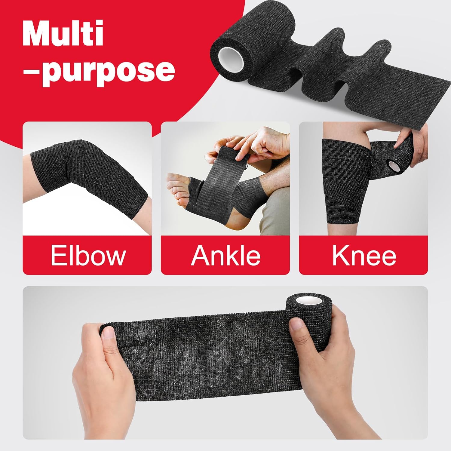 - Breathable & Highly Elastic Fabric: Self adhesive bandage wrap is made of special elastic lightweight compression bandage fabric, which is stretchy, breathable and skin-friendly