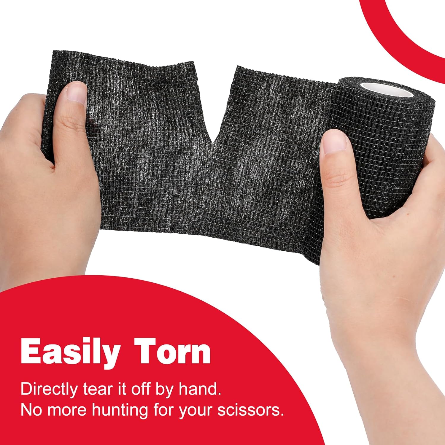- Self Adhesive Bandage: Package includes 9 rolls of black self adhesive bandage wrap. Each roll measures 4 inch wide and 5 yards long after stretching. It easily adheres to itself but will not stick to other surfaces such as skin or hair, making it easy to pull off and change bandages
