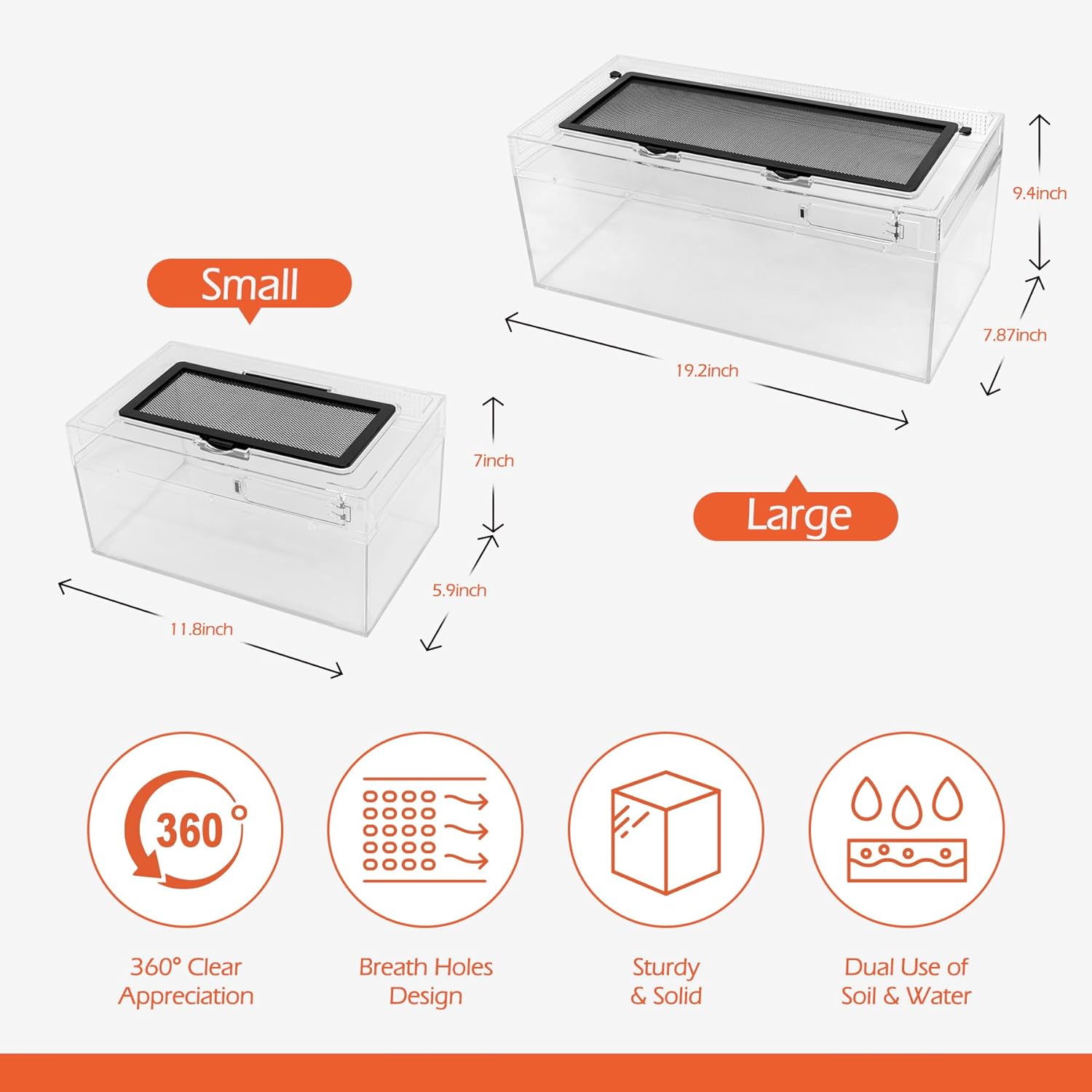 - Design Details: Unlike standard acrylic terrariums, our PC terrarium features a one-piece, unbreakable design. It’s waterproof, suitable for both desert and rainforest habitats, and includes a feeding cover on top for easy access and escape prevention