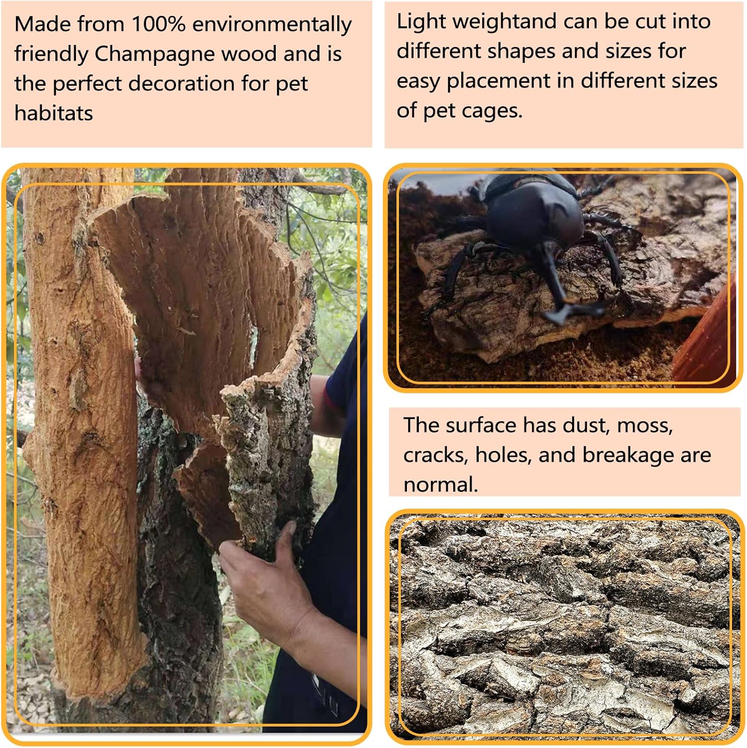 - Natural Material: Our reptile cork bark backgrounds are made from champagne wood, ensuring safety and durability for your reptilian friends. It creates a natural habitat mimicking the wild environment, allowing them to live and play freely.