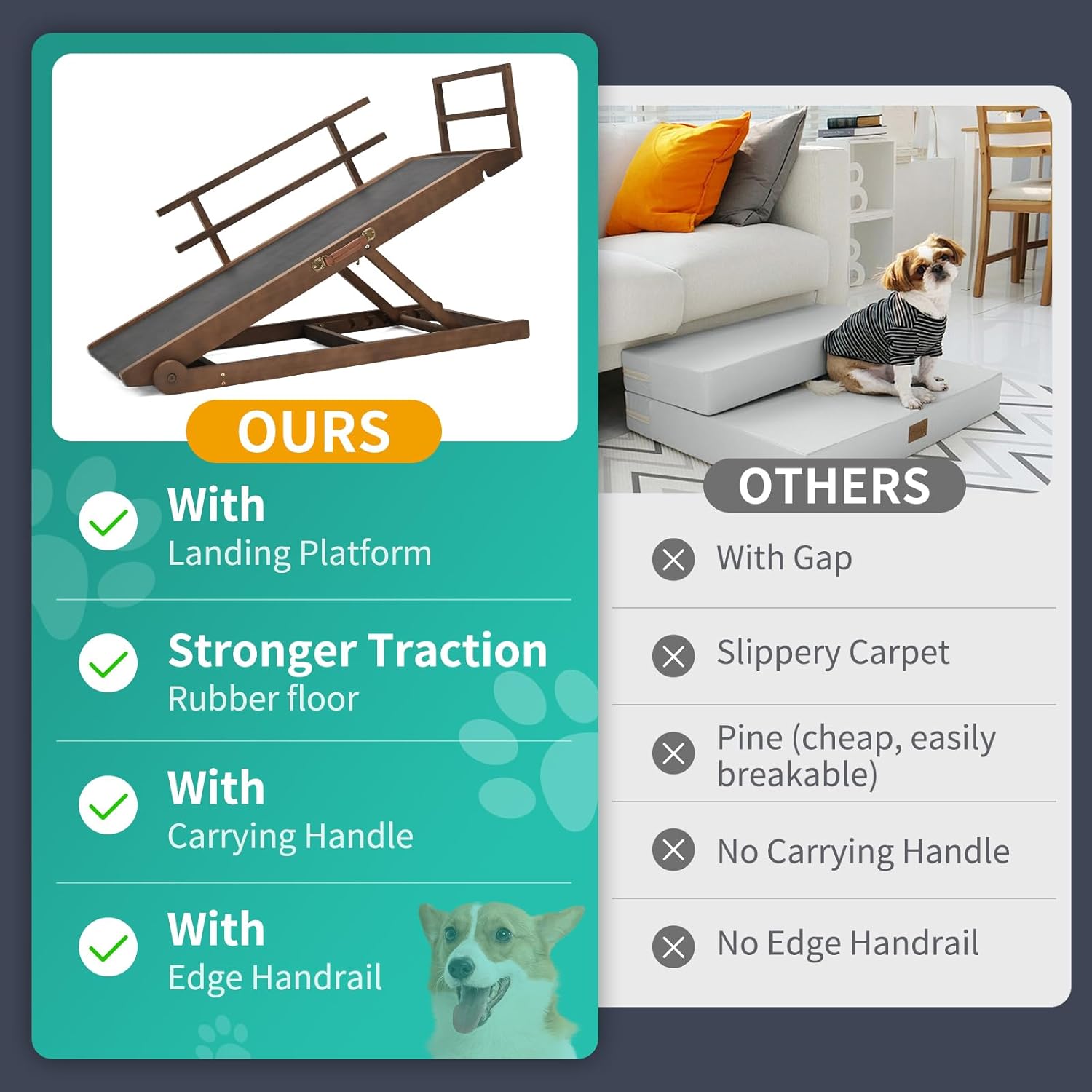 - HIGH TRACTION & ANTI-SLIP - Upgrade Rubber Mat provides anti-slip surface which gives incredible traction to your dog. Built from sturdy wood and equipped with stainless steel fasteners to provide heavy-duty support and maximum durability, It can support pets up to 200 pounds.