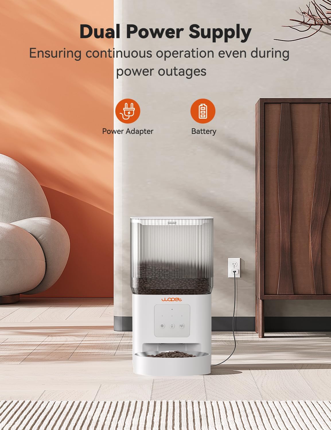 WOPET Automatic Cat Feeder, WiFi Dog Feeder with APP Control for Remote Feeding, Automatic Cat Food Dispenser with 10S Voice Record,1-10 Meals Per Day for Cats and Dogs