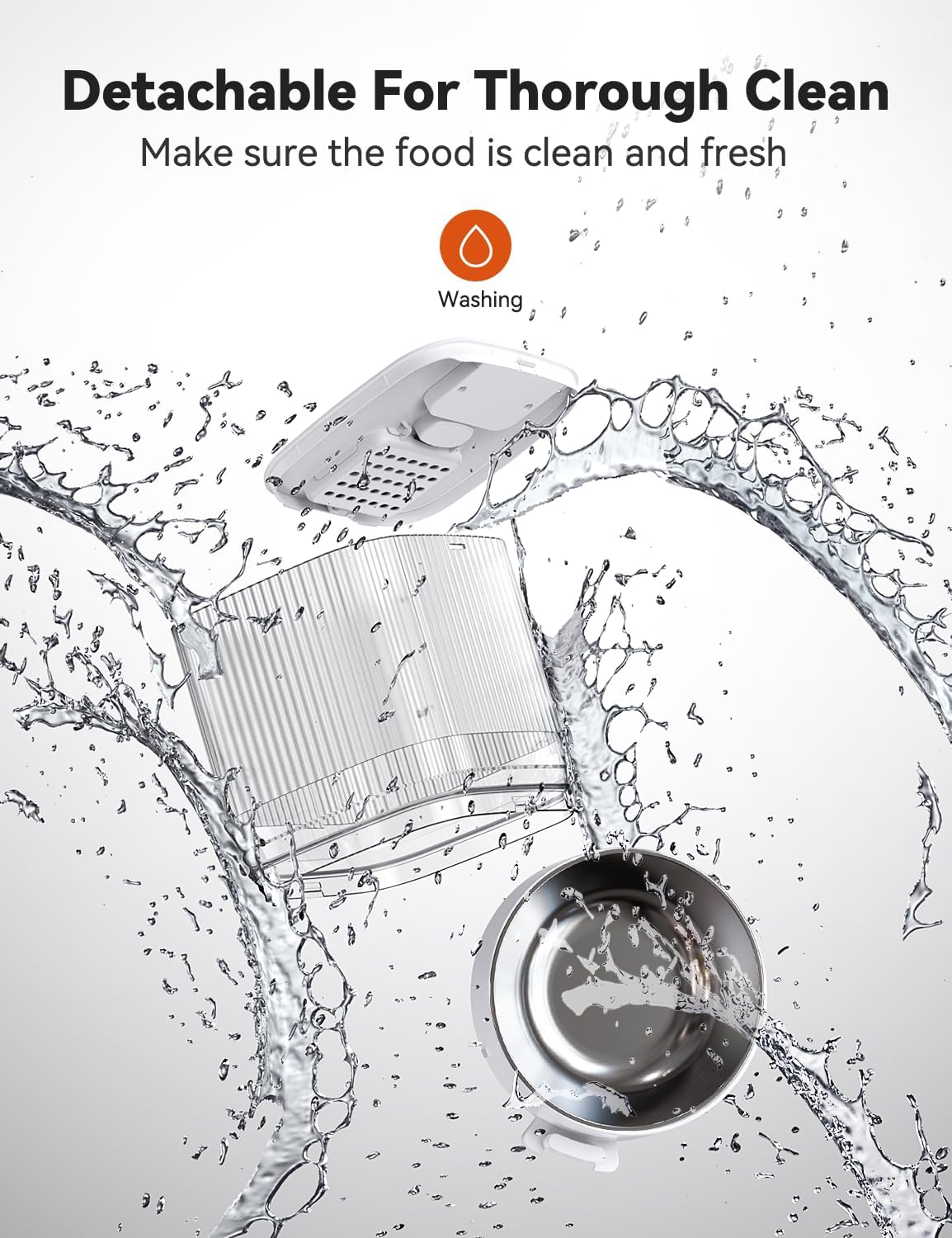 - Reliable Twist-Lock Storage: The automatic cat feeder comes with a unique twist-lock lid, ensuring the perfect amount of dry kibble (sized 0.07-0.47in / 2-12mm in diameter) is securely stored. This design preserves the crunchiness and flavor of the food while keeping it safe from curious paws.