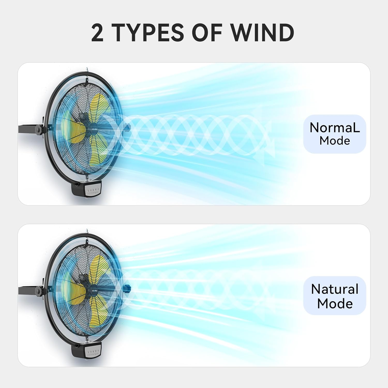 - 3 Speeds Dynamic Airflow: Upgraded the motor on the original basis, making the 20-inch wall mount fan with remote more powerful than before. High velocity fan runs at 5100 CFM with pull chain in high speed, medium 4400 CFM, low 3900 CFM. Great for industrial, commercial, covered patios,warehouse and workshops. This is an industrial wall mounted fan, the noise is slightly louder than home fans, but less noisy than most of the same size industrial fans