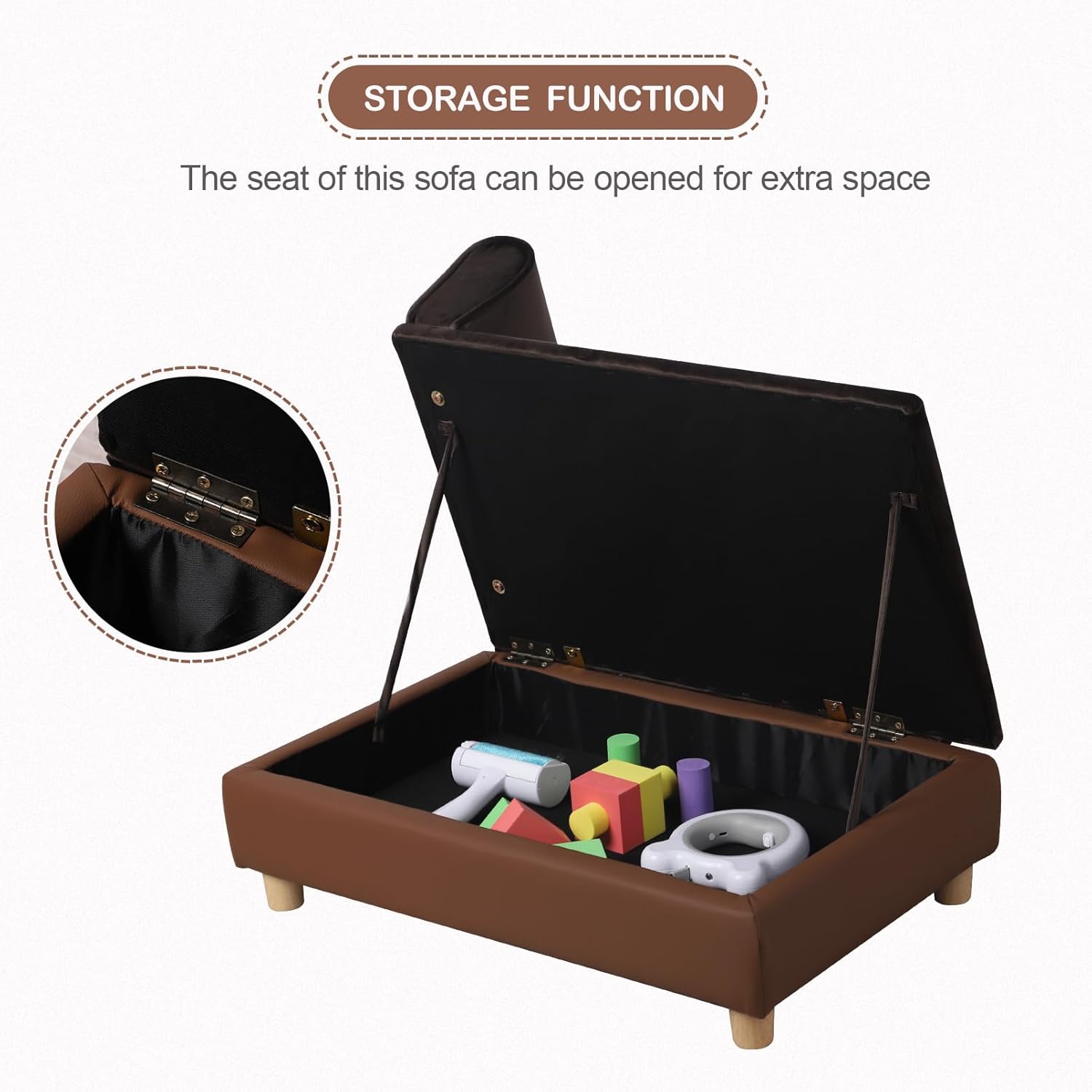 Pet Bed Sofa, Puppy Bed with Storage, Small Dog Couch with Removable & Washable Cushion, Comfy Pet Couch Bed for Cats & Puppy (Brown)