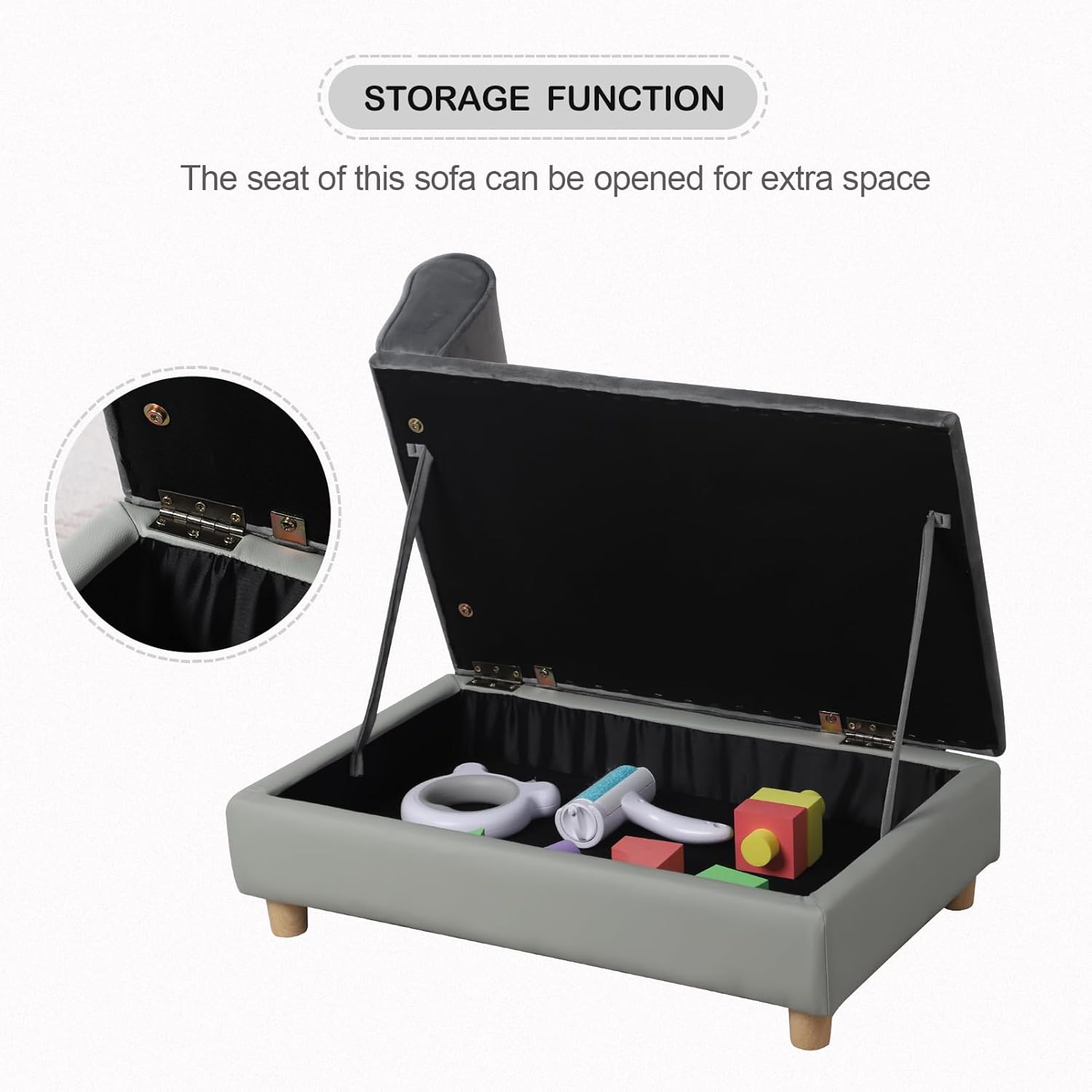 Pet Bed Sofa, Puppy Bed with Storage, Small Dog Couch with Removable & Washable Cushion, Comfy Pet Couch Bed for Cats & Puppy (Gray)