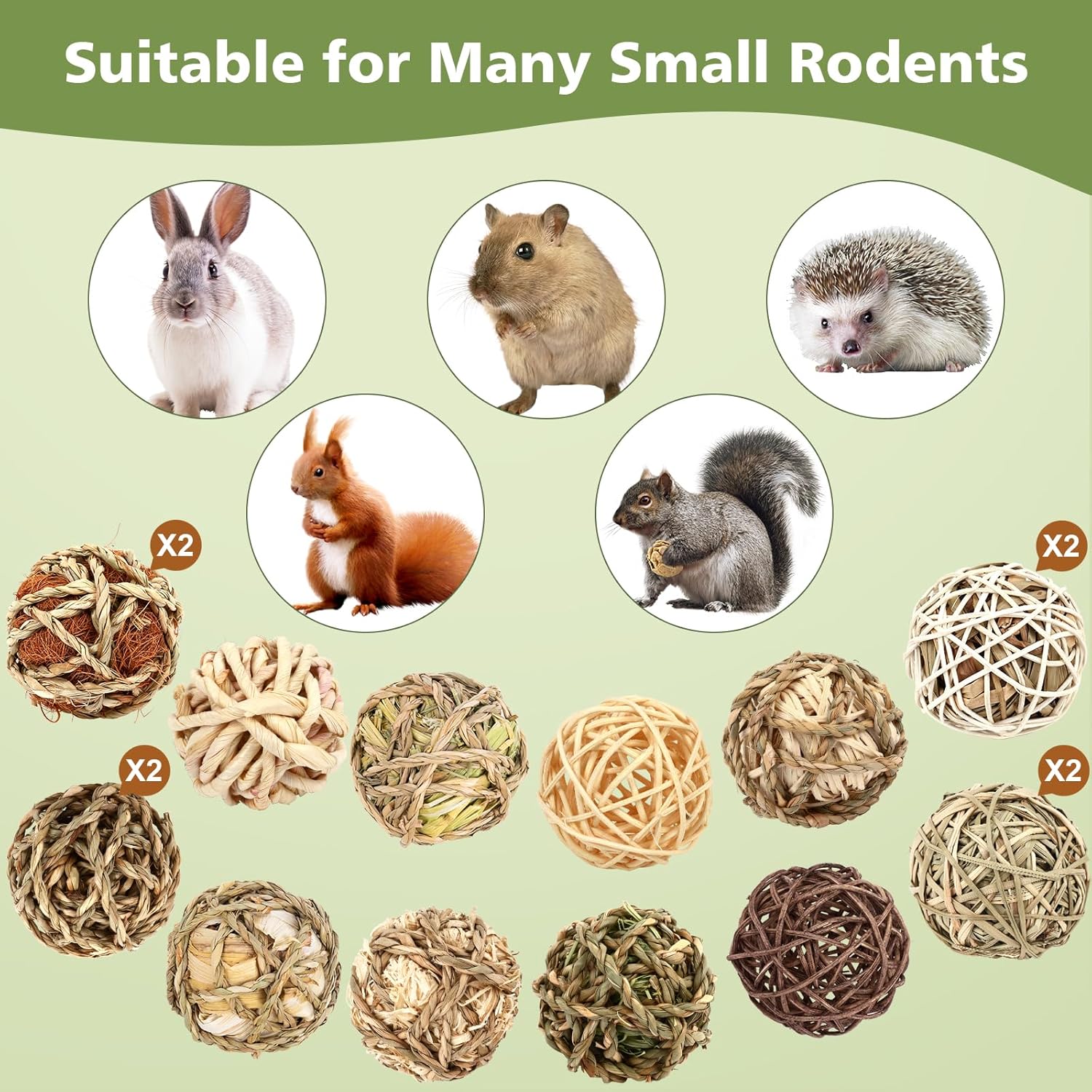 - 🐹【Suitable for Small Animals】These grass balls are ideal choices for rodents such as rabbits, chinchillas, hamsters, gerbils, and birds. They can throw the ball out for entertainment, conducive to the improvement of pet mood, chewing on natural grass balls also contributes to the physical health of small animals.