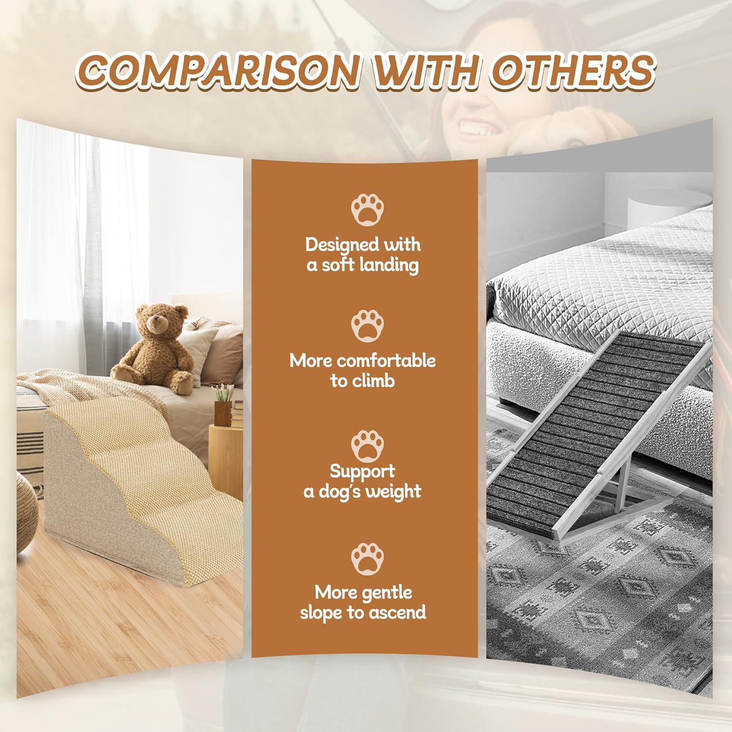 - 33D REBOUND HIGH-DENSITY FOAM: Our 33D foam delivers 63% faster rebound vs standard foam with enhanced weight capacity. Perfect for puppies, senior dogs, and pets recovering from surgery to access beds/couches safely. Dual-purpose as cat stairs for multi-pet households