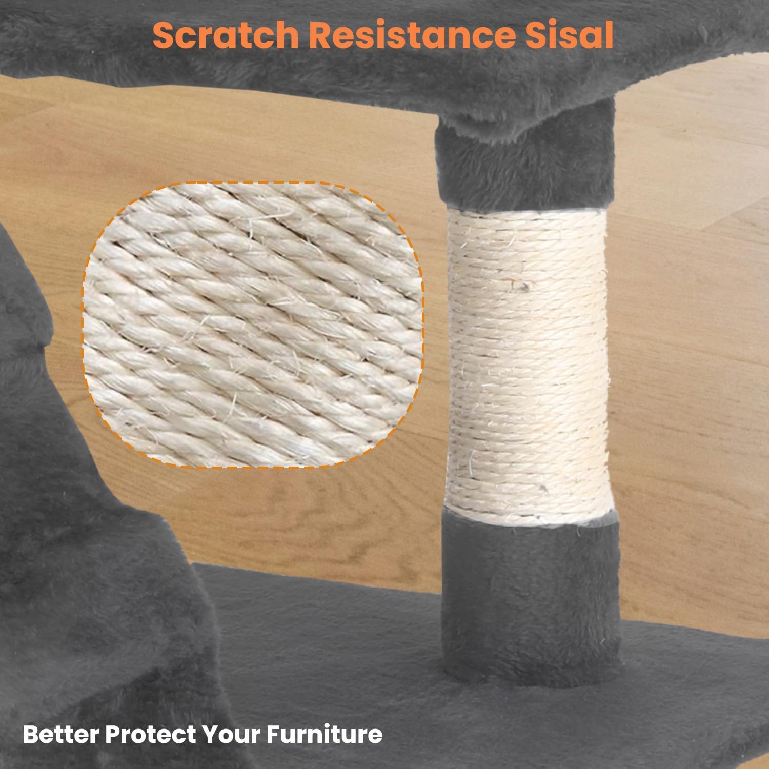 - Protect Your Furniture:Our fully functional and uniquely designed large cat scratching tree is a magical castle for kittens, providing a great place for your feline friend to climb up and down. It's a great way to relax while protecting delicate furniture from scratches, and with this tall indoor cat scratching tree, your cat can enjoy a full day in the cat tower!