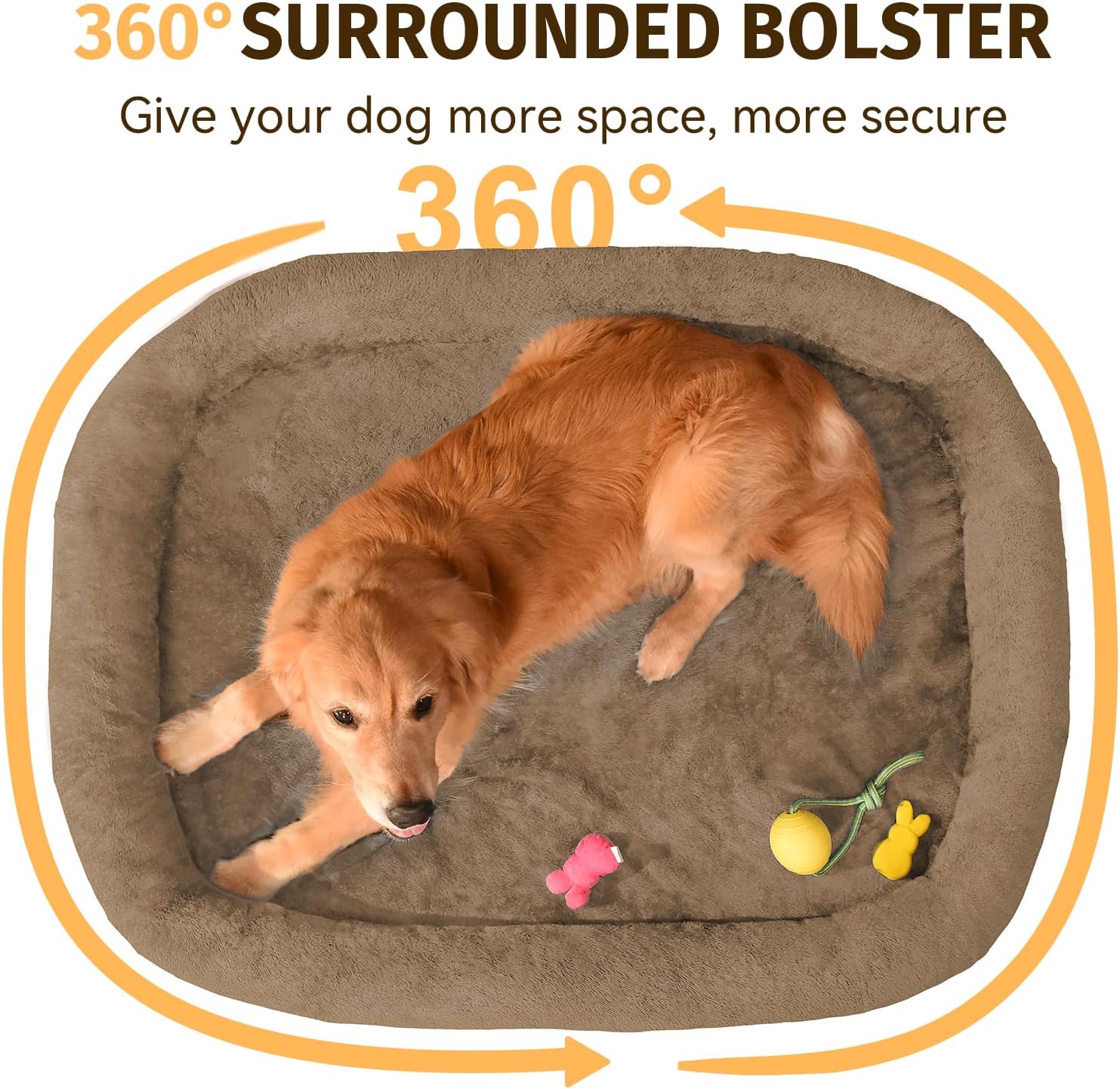- 360° Surrounded Support: This 360° full circle design creates a secure sleeping environment, making dog bed large ideal for dogs who prefer a more enclosed space; The bolsters also served as a headrest that provides additional support for the neck and back; Whether your dog likes to curl up or stretch out, this orthopedic dog bed accommodates all sleeping positions