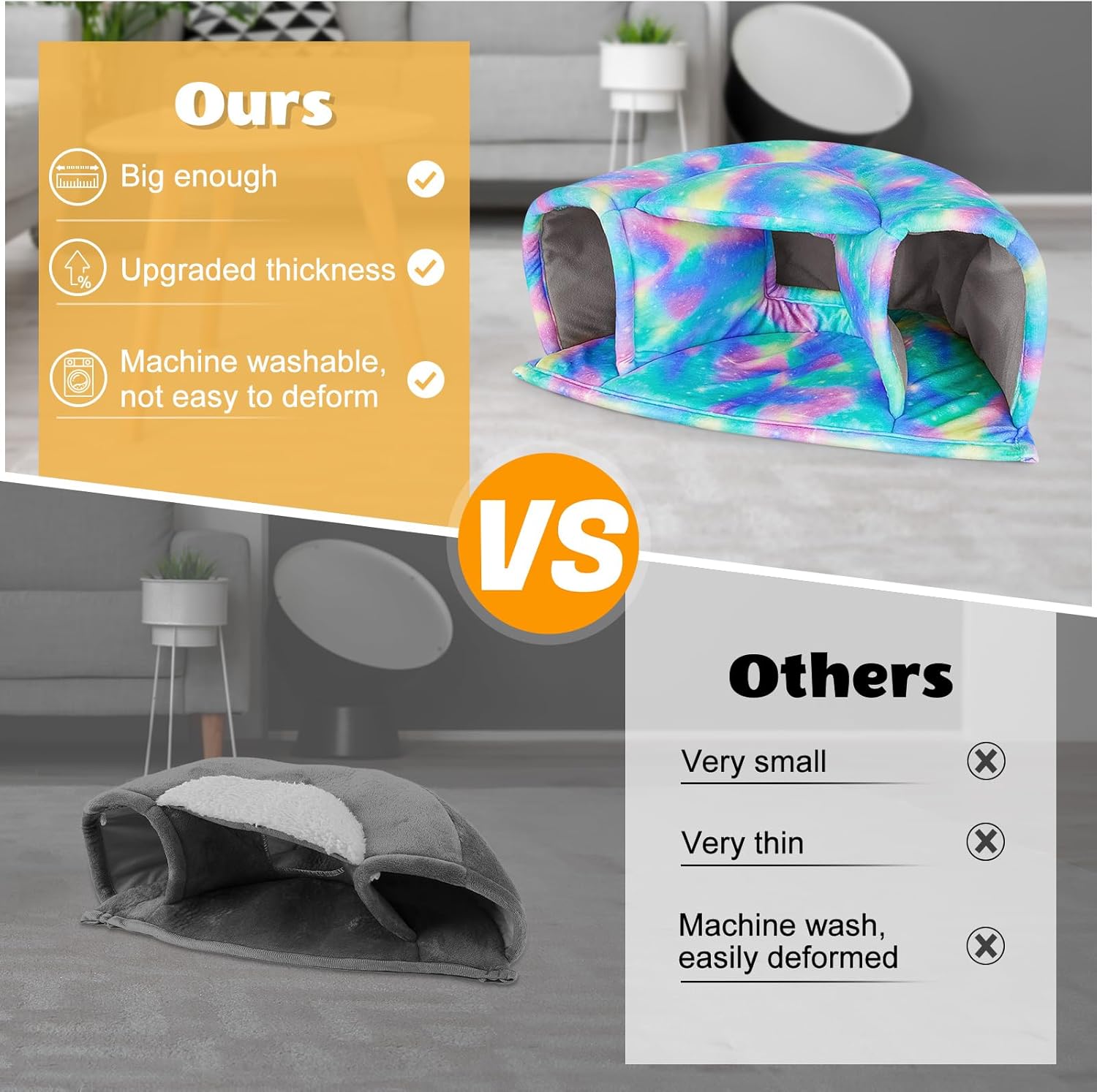 - Machine Washable: The guinea pig hideout is made of short plush and high-density elastic sponge; Not only is it very soft to the touch, but also more comfortable and warm, the fabric is thick enough to hold its shape and stay upright after many washes