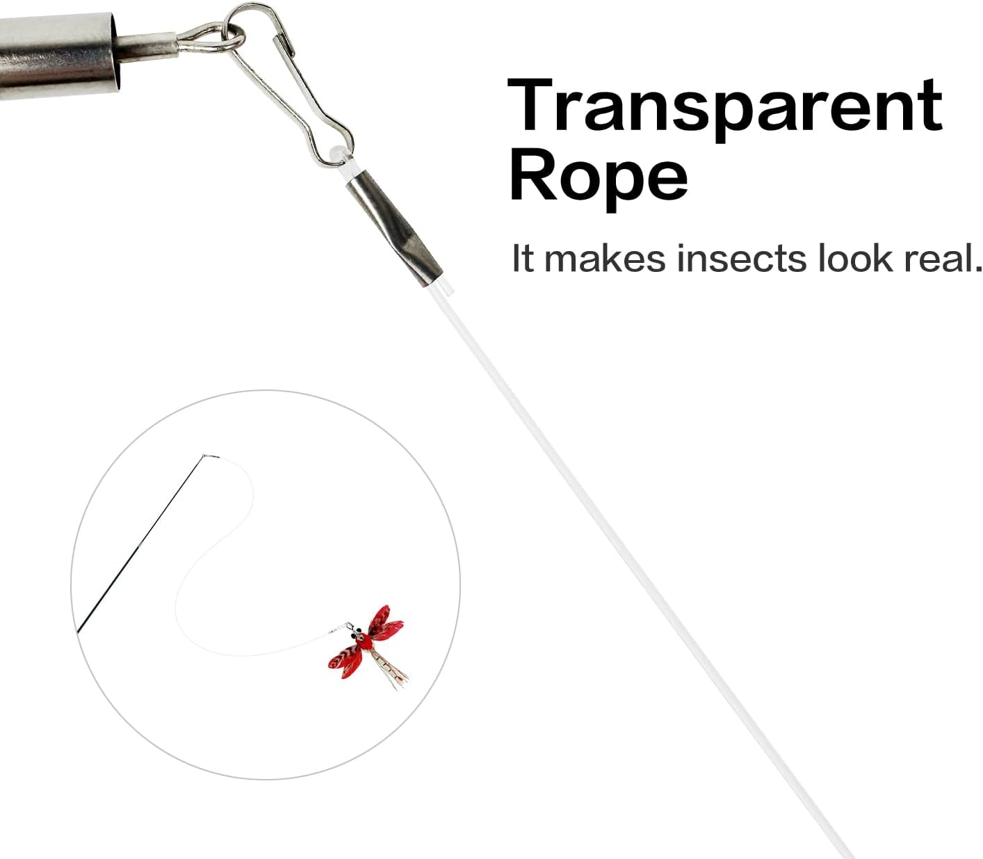 TTcat Cat Feather Wand Toys,Retractable Wand Toy with 3 Simulation Insects Refills, Transparent Carbon Wire,Interactive Cat Toy Kitten Toy for Indoor Cats to Play Chase Exercis
