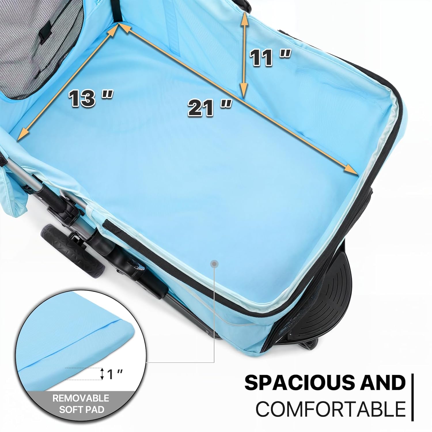 - Durable and Comfortable - Made of tough Oxford cloth and able to hold up to 33 lbs, our dog stroller is not only water-resistant but also provides added comfort with a padded foam bottom that your furry friend is sure to appreciate.