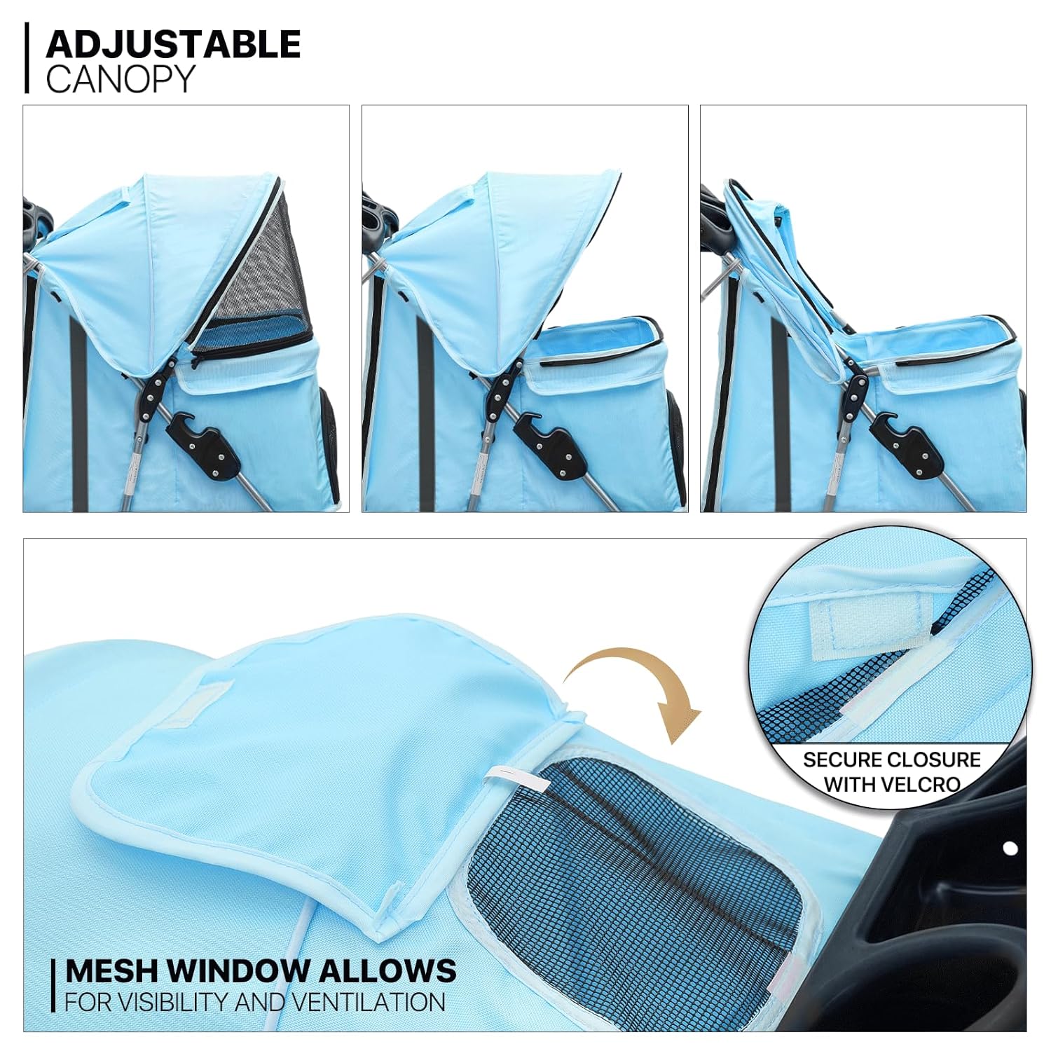 - Sturdy and Safe - Our pet stroller is equipped with breathable mesh windows that allow your furry friend to see and breathe easily. The Oxford cloth material is water-resistant and durable, ensuring your pet's safety and comfort.