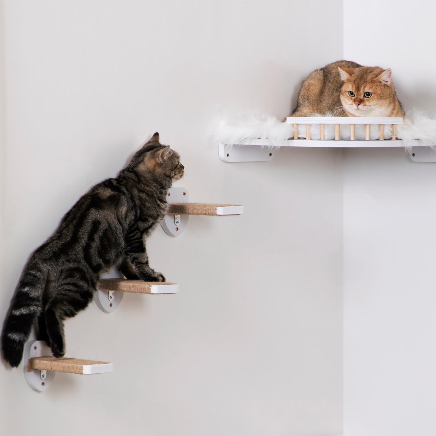 - 【Easy to install and maintain】 Each cat climbing wall step has reserved installation holes, facilitating a simple and fast installation process. Without the requirement of complex tools or professional skills, you can effortlessly install it on the wall to create a brand-new activity space for your cats.