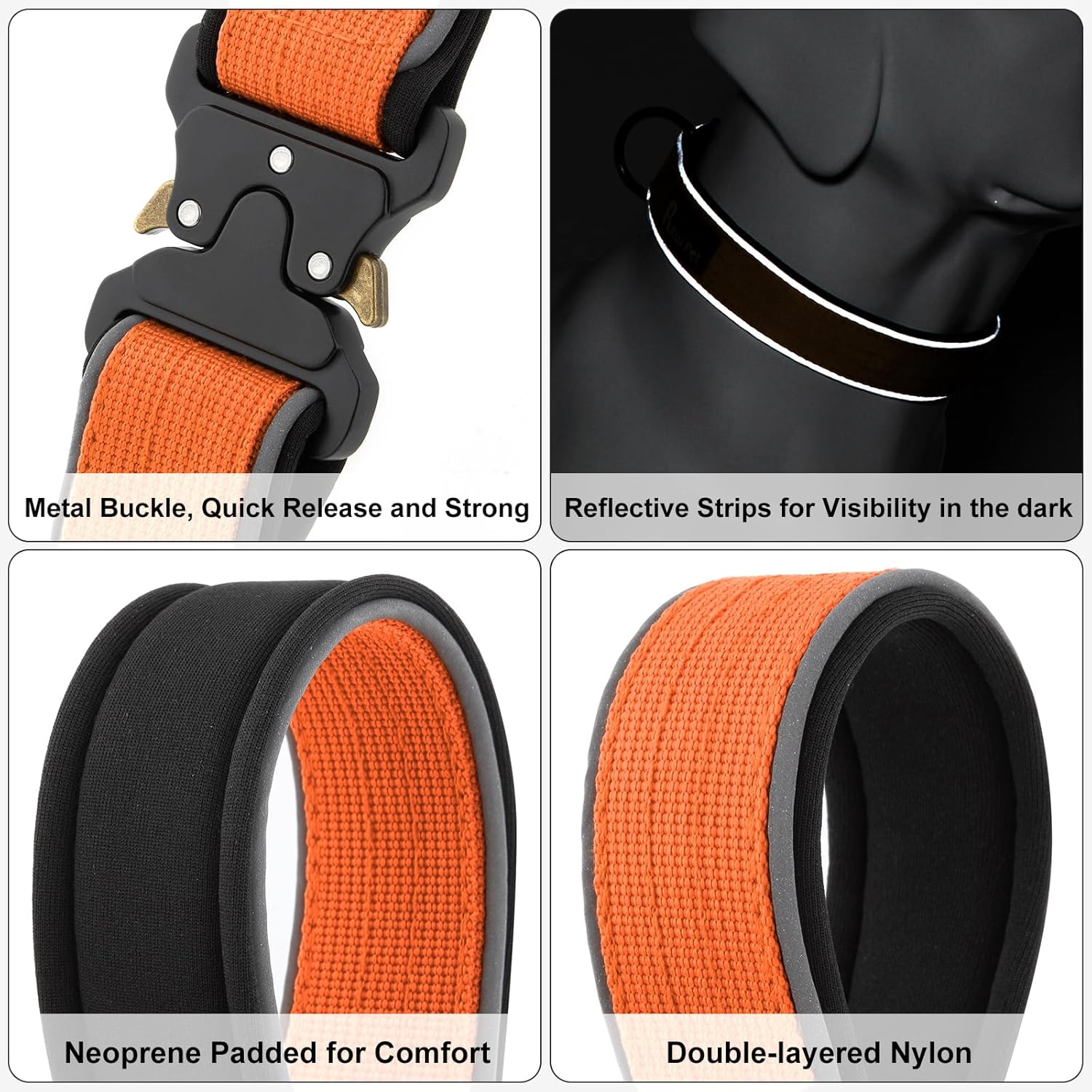 Plutus Pet Tactical Dog Collar, Reflective, Adjustable Heavy Duty Dog Collar, Soft Padded and Comfortable, for Small Medium and Large Dogs (Orange, XS)