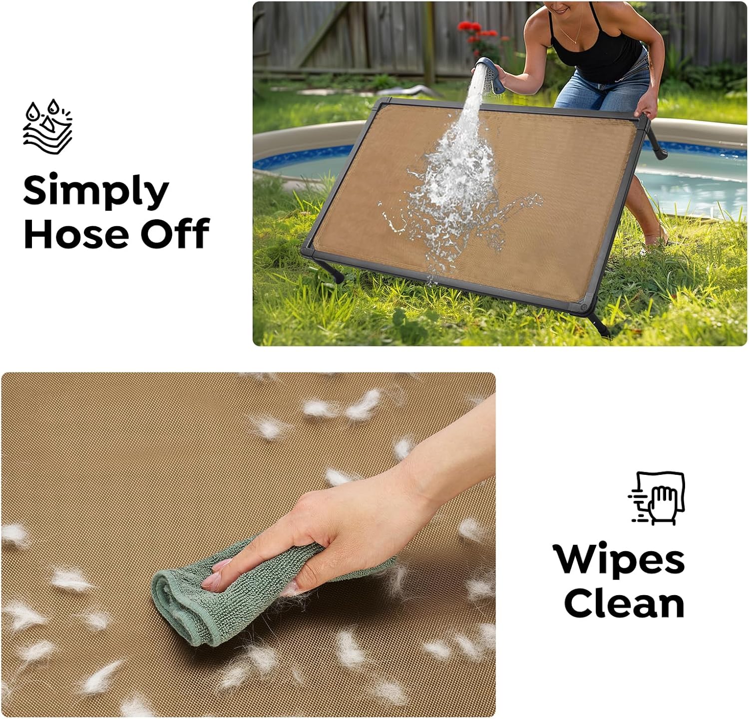- Easy to clean and Assemble: Includes screws and hexagonal tools, quick assembly within 10 minutes; Dirt on the outdoor dog bed can be wiped off with a damp cloth or rinsed off.
