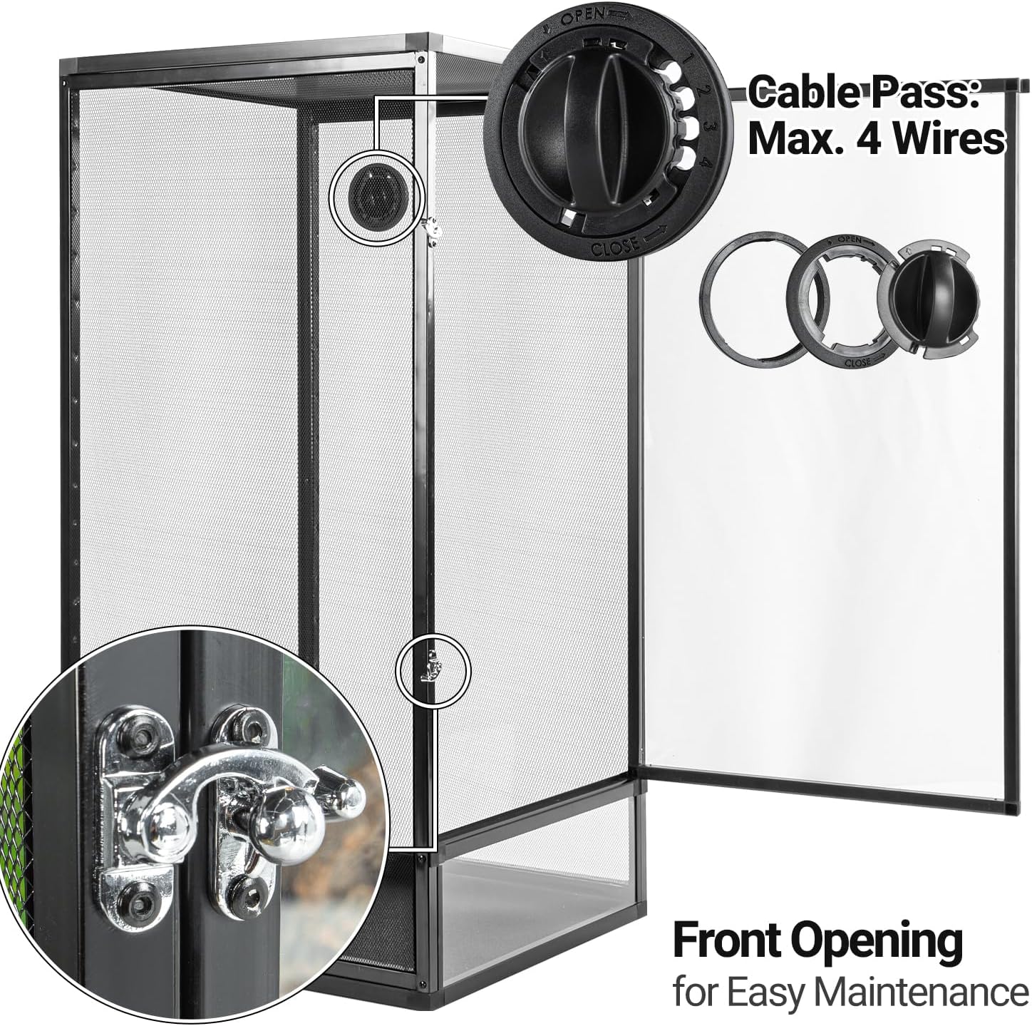 - Optimal Ventilation & Security: Our reptile terrarium boasts metal mesh on the top and both sides, providing a superbly flat surface and exceptional load-bearing capacity. The finely crafted small mesh holes ensure superb air circulation, keeping your reptiles comfortable and healthy, and prevents crickets and other food from escaping