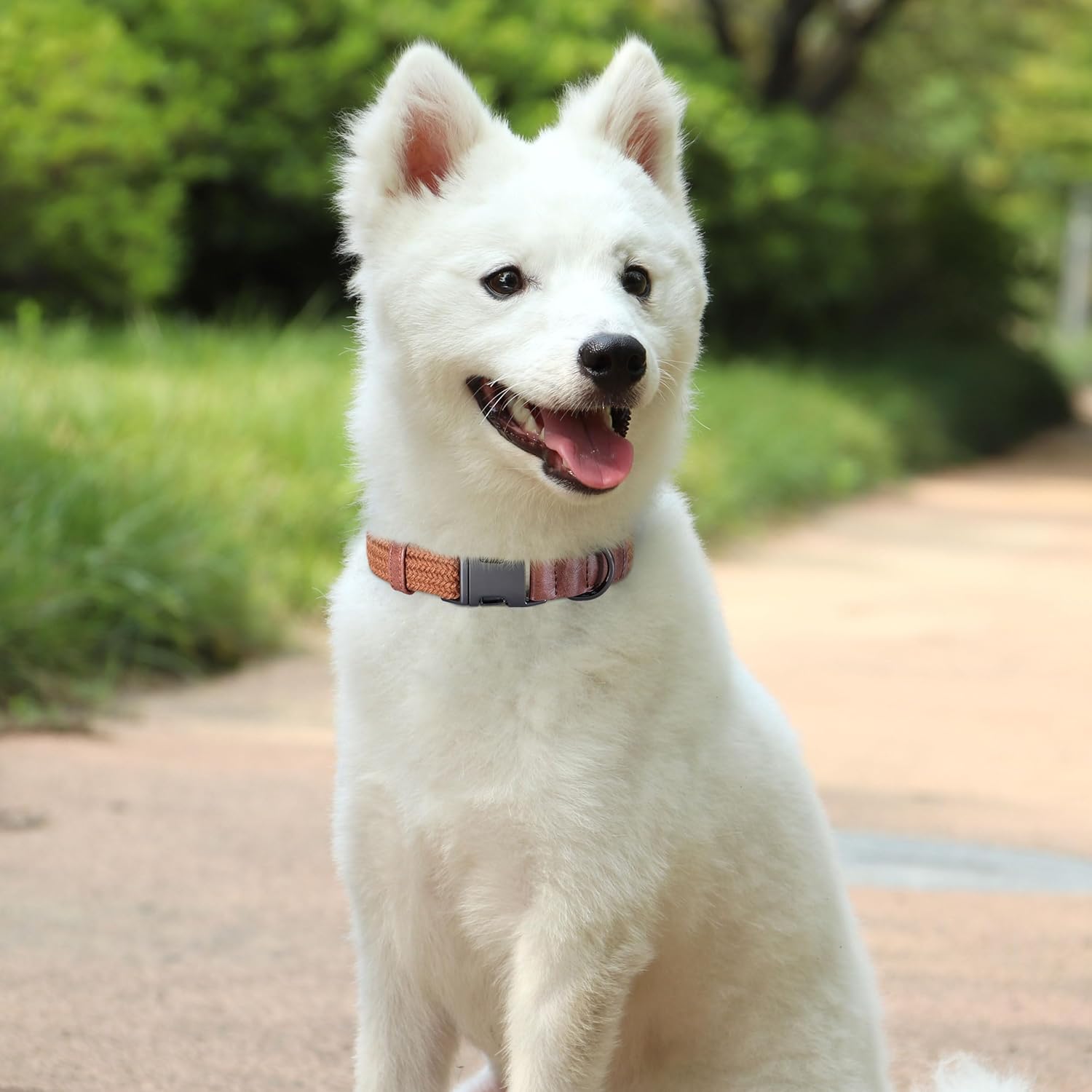 PET ARTIST Soft Cotton Dog Collar for Medium Dogs in Rustic Brown, Simple Dog Collar with Quick Release Metal Buckle & D Ring, M Size (13-21")