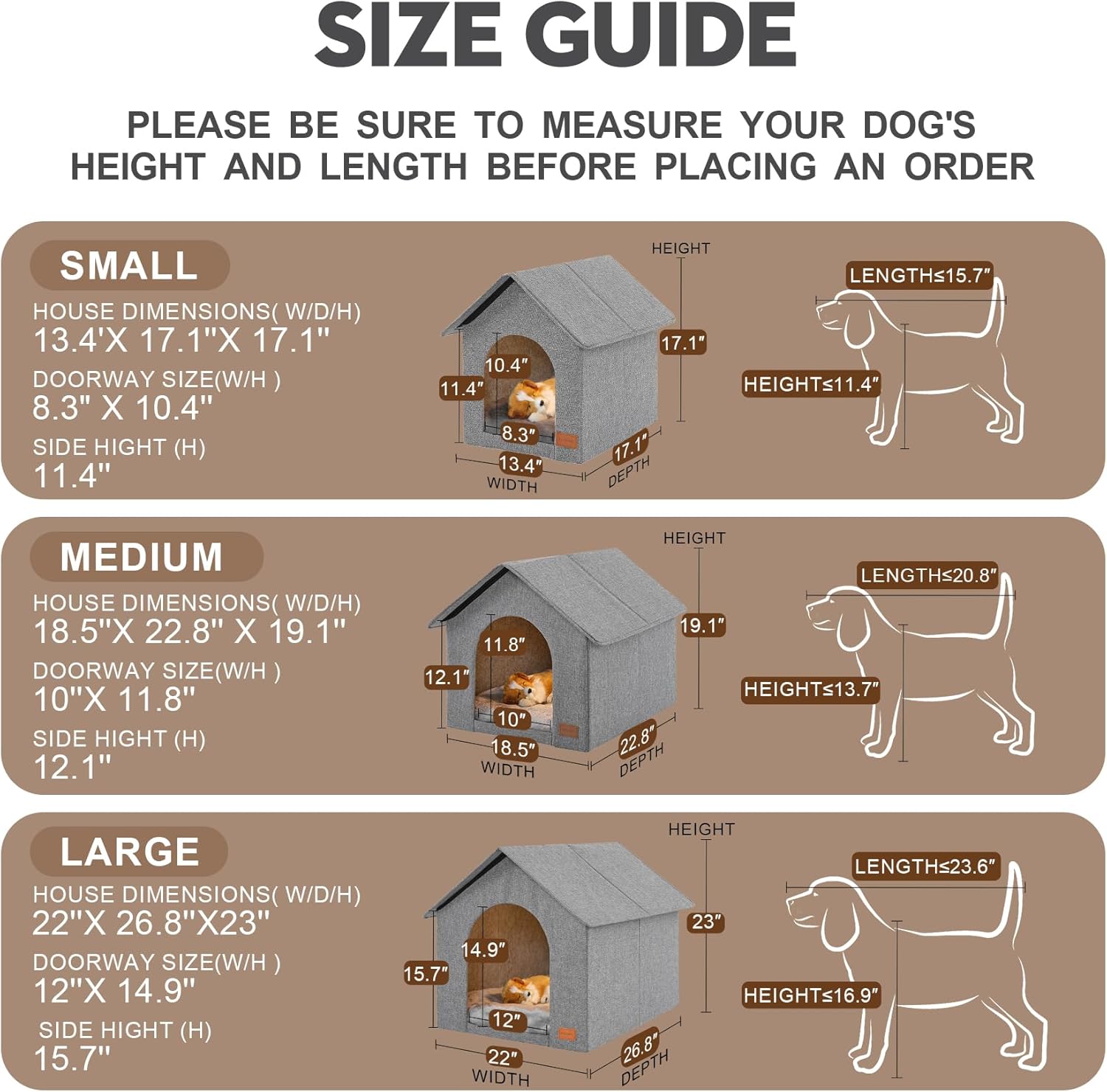 - Multi-size option: This indoor dog house provide three size,suitable for the various weight of dogs and cats,the size made based on actual testing results. If your dog or cat weight is just at the dividing line, please choose the larger size medium or size large.