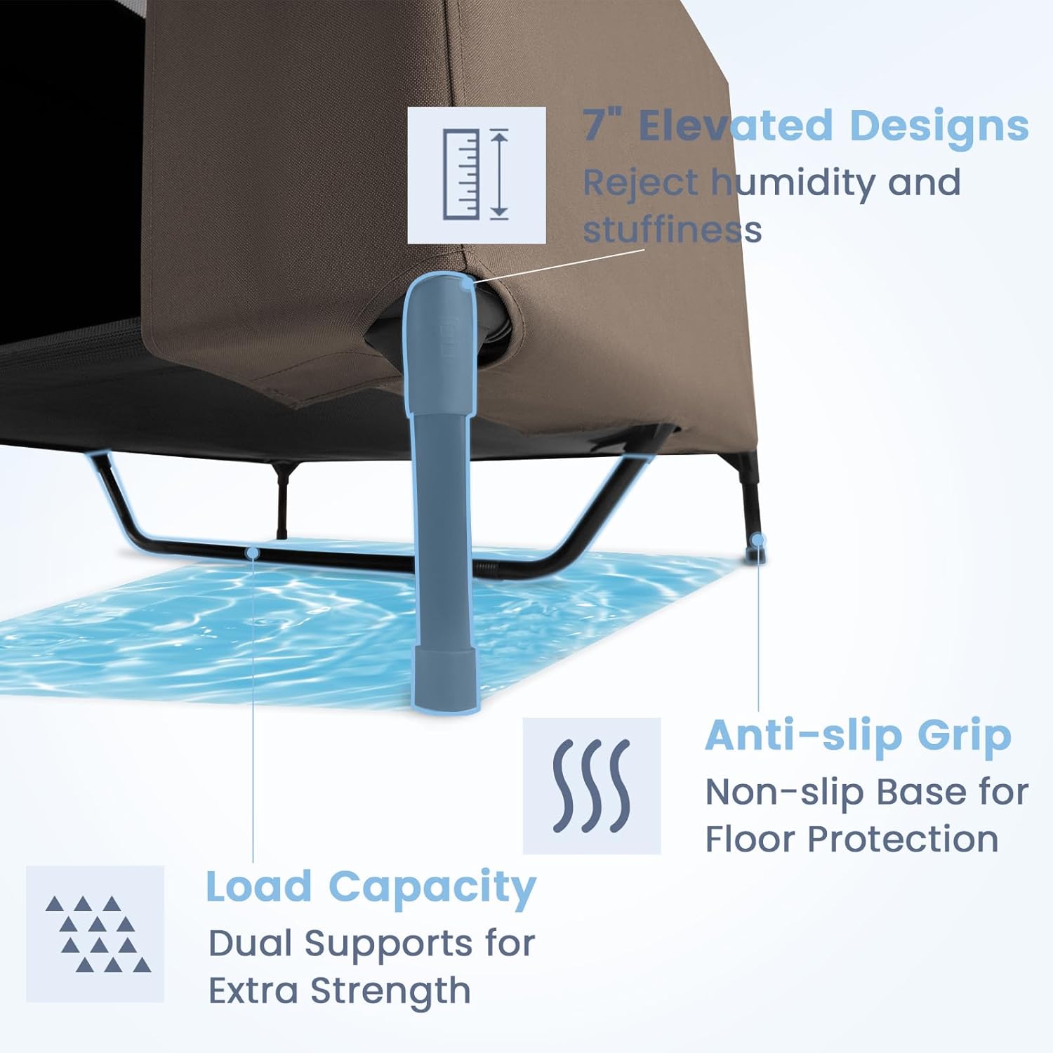 - Versatile 2-in-1 Dog House: Assembly is a breeze with no tools or screws needed β your pet will be lounging in luxury within minutes. When needed, effortlessly transform this weatherproof structure into a 2X1 Textilene elevated dog bed for easy maintenance and unparalleled comfort.