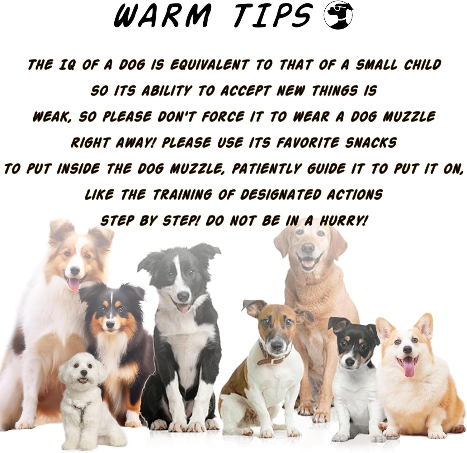 - Optimal fit & Secure: Comfort-fit design for all sizes of breeds with adjustable head and neck straps allow you to quickly adjust the size to fit your dog, making it ideal for the puppy, small, medium, and large dogs. Two folds in the strap on each side of the dog mouth muzzle are for making the dog mouth cover fitting for your dog. It’s our unique design and not stitching damage