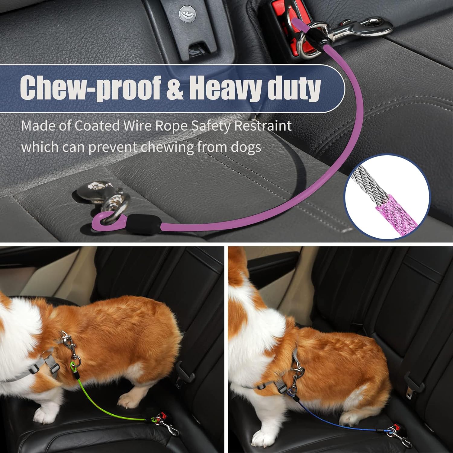 Dog Seat Belt Harness for Car,Dog Seatbelt of Coated Wire Leash Safety Restraint,No Chew Tether Cable Vehicle,Double Clips & Latch (Purple, 24 inch/60 CM)