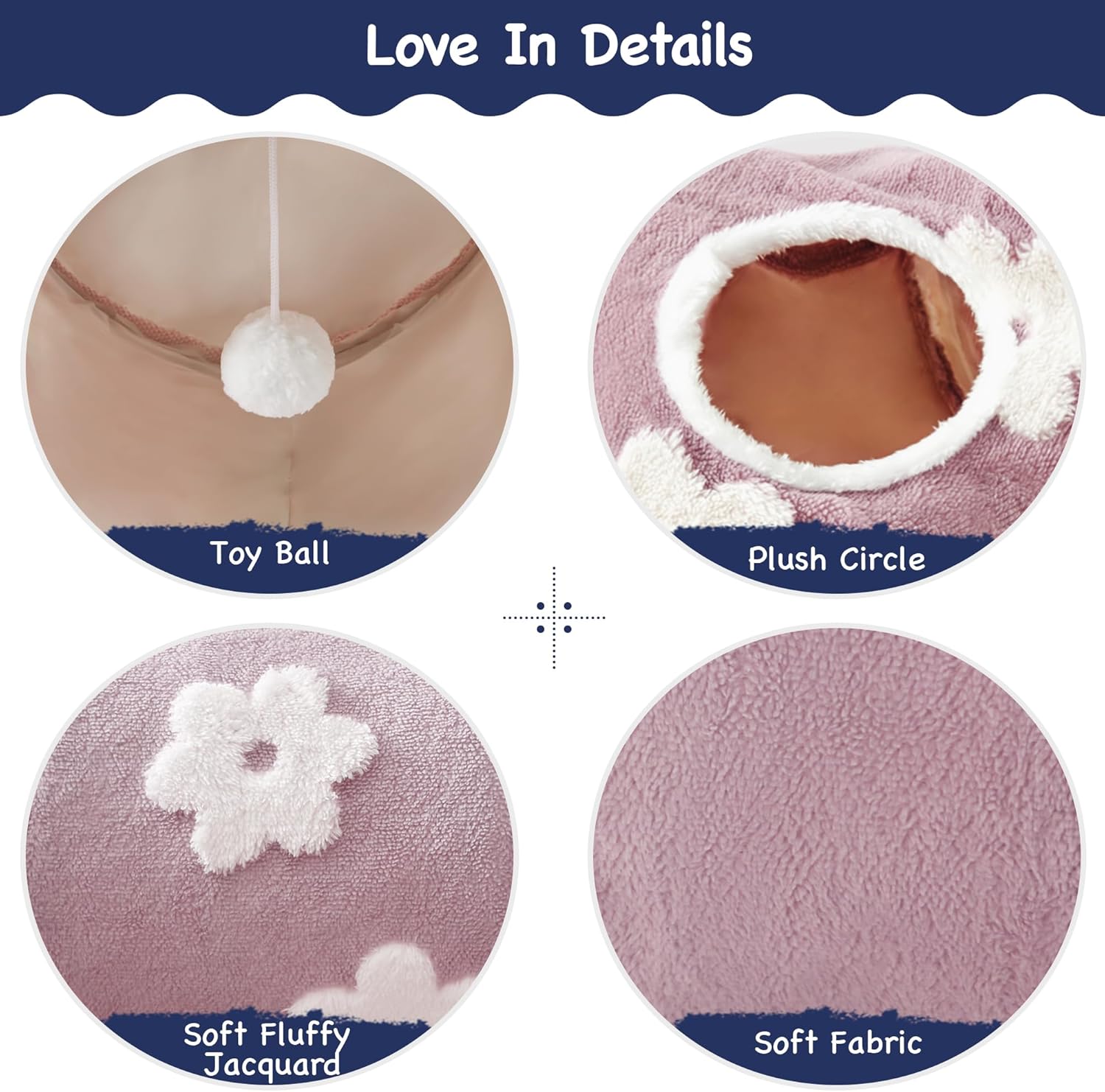 Tempcore Flannel Pet Cat Tunnel Tube Cat Toys 3 Way Collapsible, Cat Tunnels for Indoor Cats, Kitty Tunnel Bored Pet Toys Peek Hole Toy Ball Puppy, Kitty, Kitten, Rabbit Daisy Burlwood