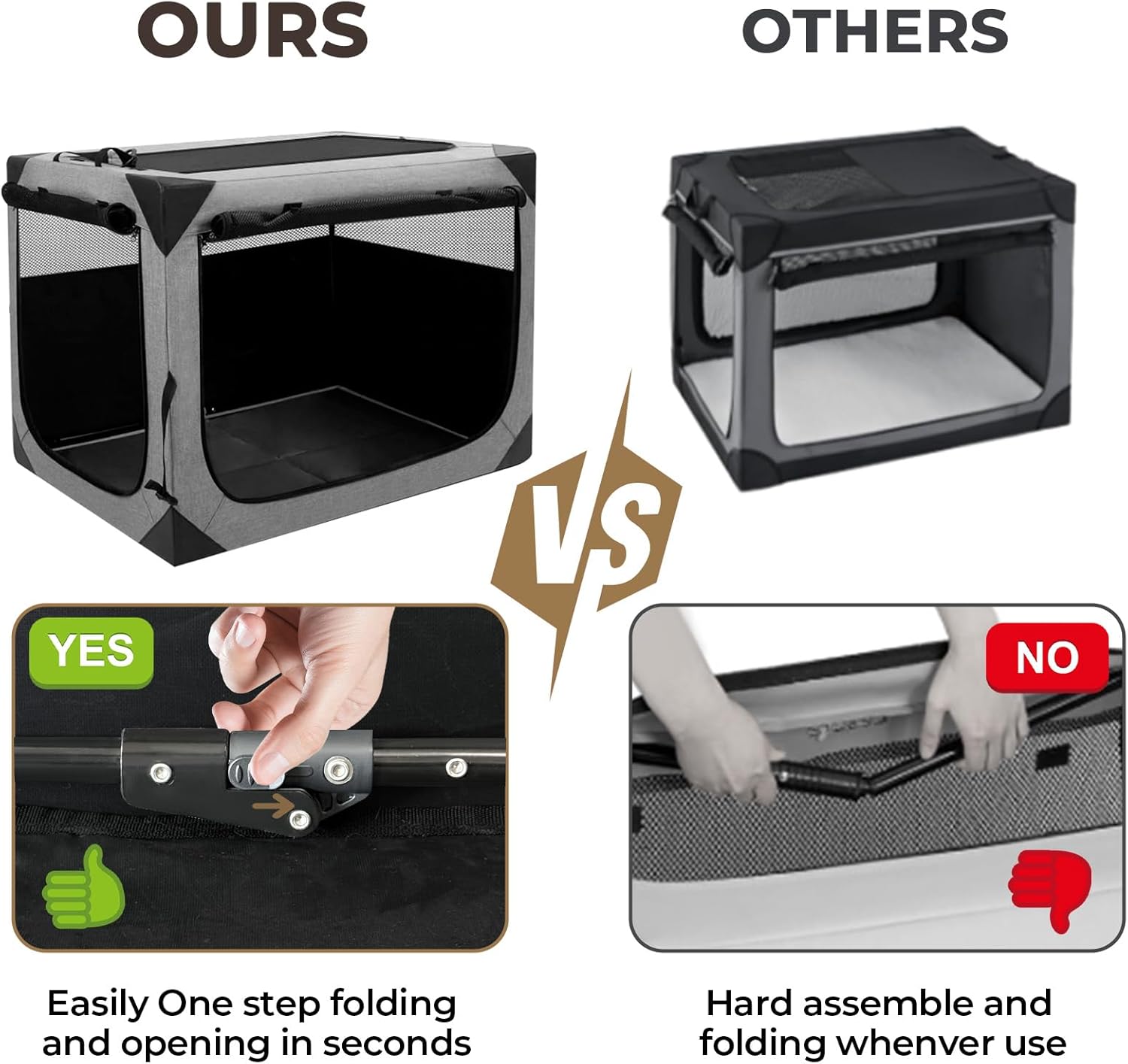 - Only Minutes Setup β Store Anywhere, Clean Everywhere "Assemble this portable dog crate faster than folding a lawn chair β no tools, no hassle. Wipe muddy paws or spills with a damp cloth. The foldable dog crate collapses slim enough to stash under beds or car seats."