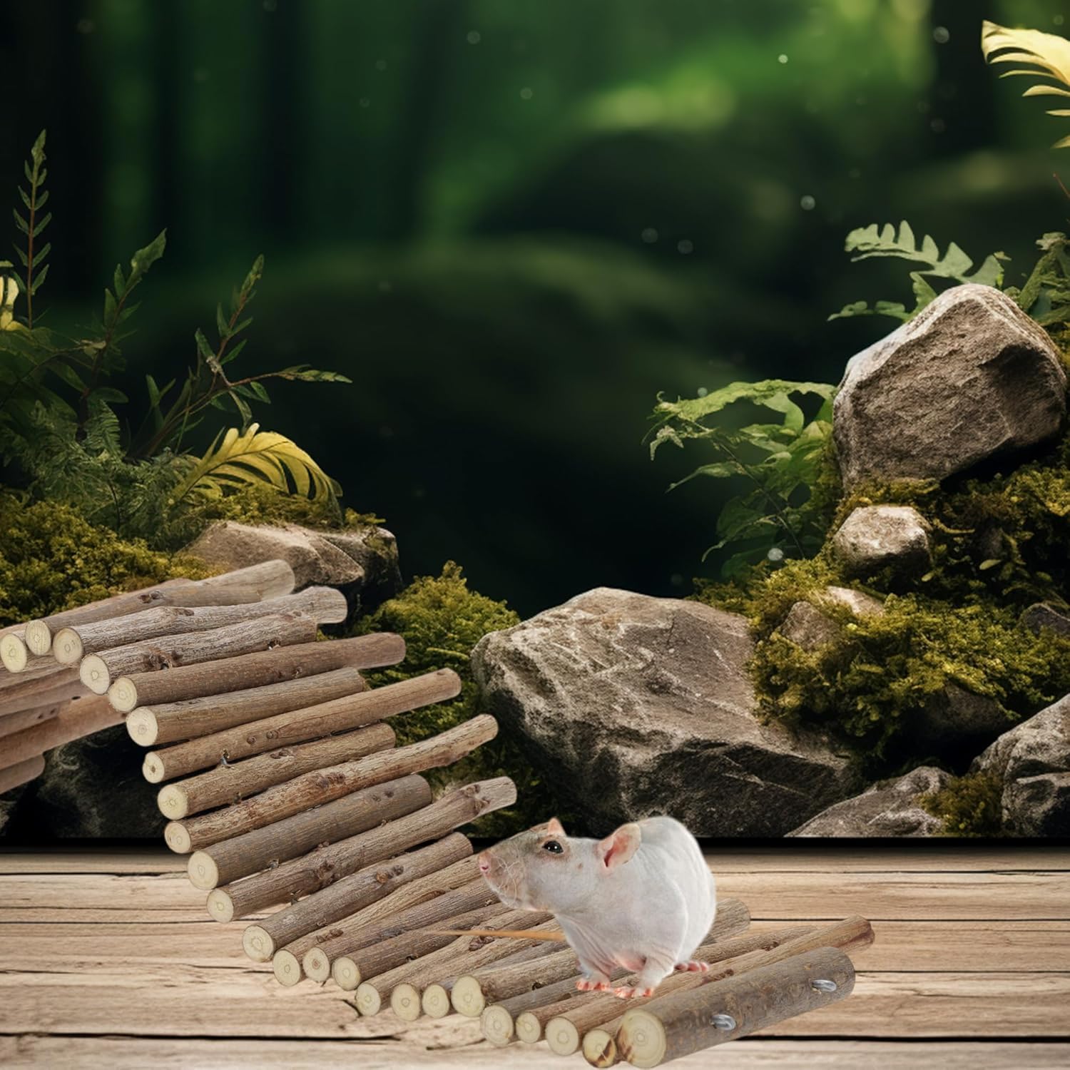 Hamster Toys, Flexible Hamster Wooden Bridge, 11.8In Hamster Fence, Hamster Cage Decor and Platforms, Hamster Cage Accessories(11.8In)