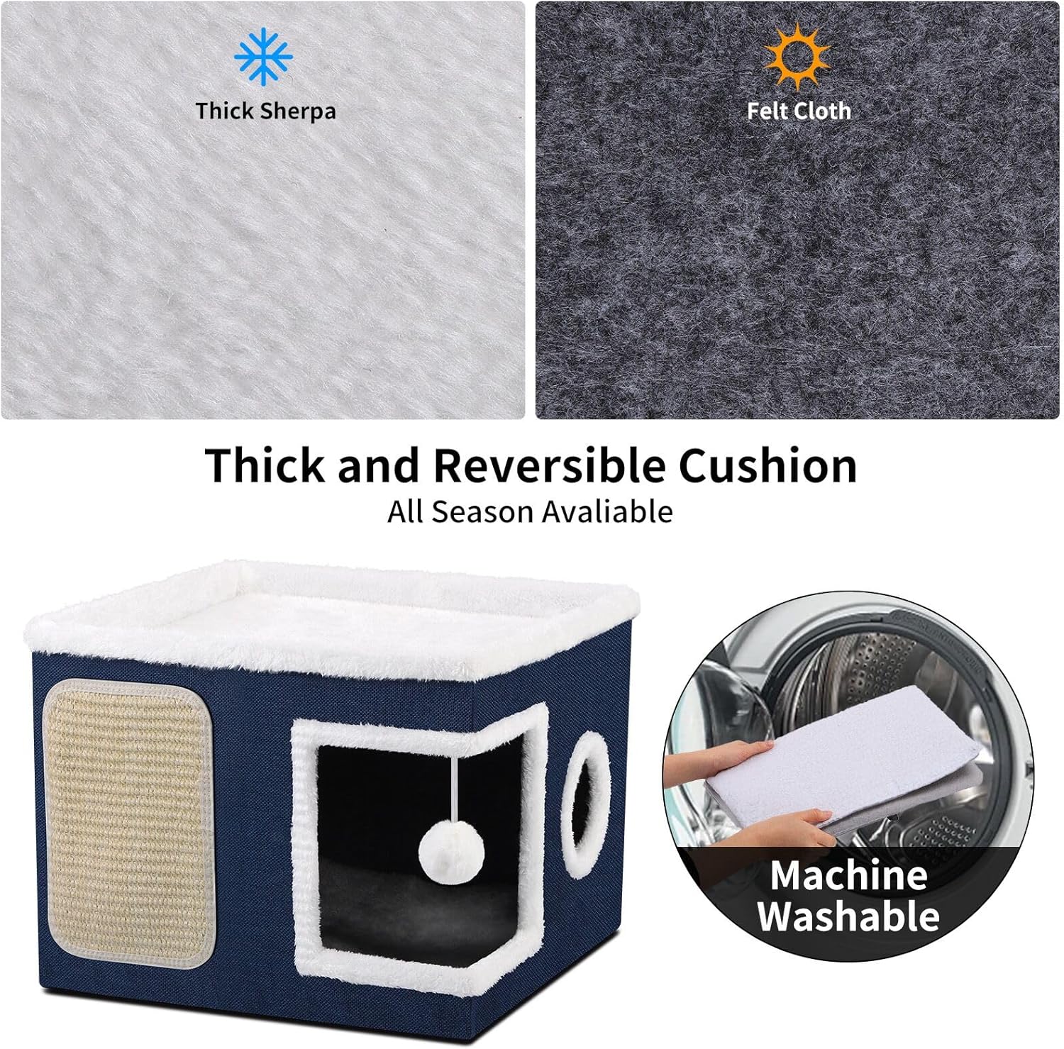 - 😺【Interactive & Fun Design】: The cat cube provides a durable scratching pad to entertain your cats and promotes healthy scratching habits, while the round window and hanging ball add extra fun to keep your furry friend active and engaged while providing a cozy resting spot.