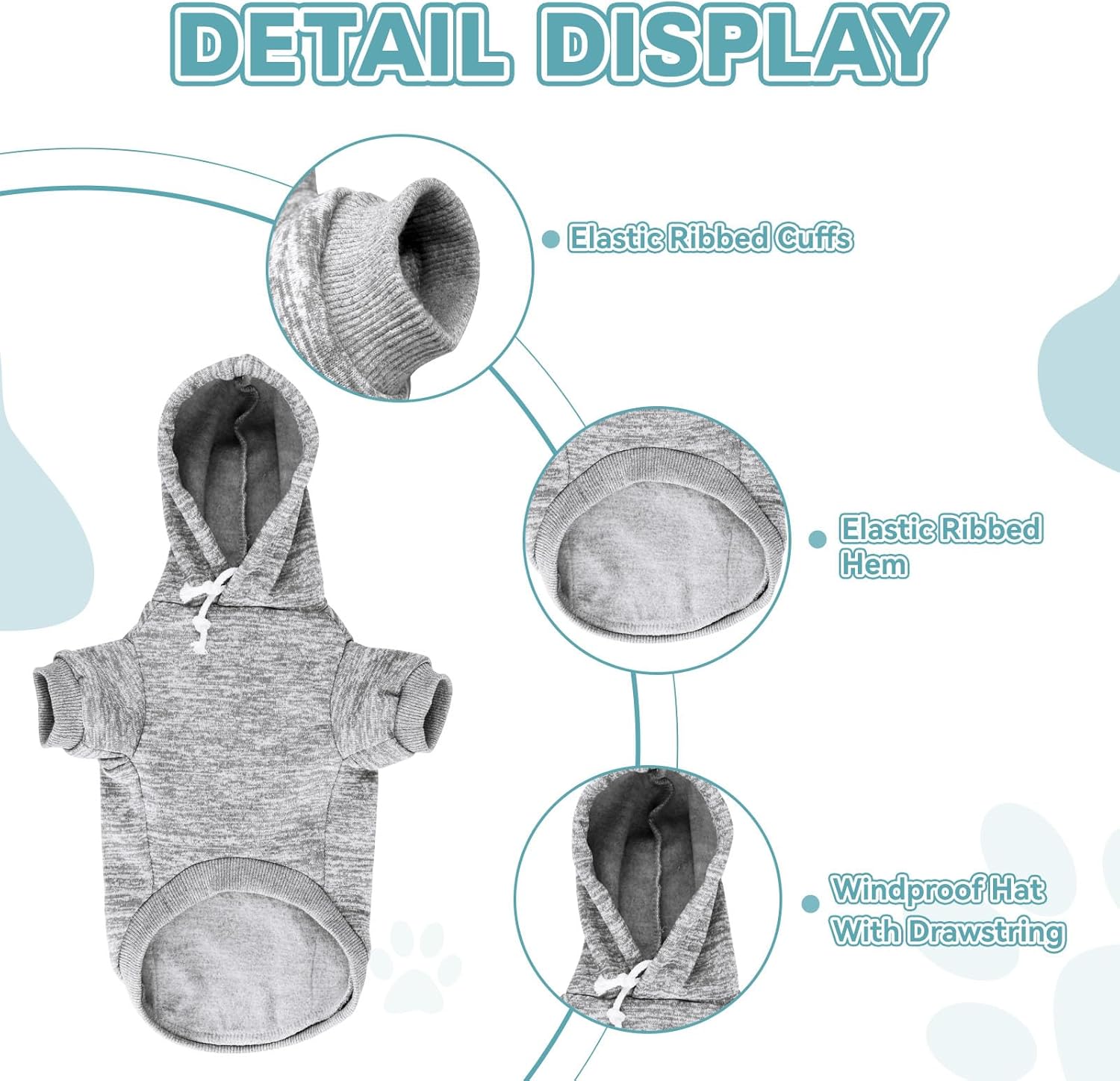Dog Sweaters for Small Dogs Hoodie Fleece Dog Sweater Soft Clothes Sweatshirt with Pocket Hoodie for Small Dogs Puppy(Grey&S)