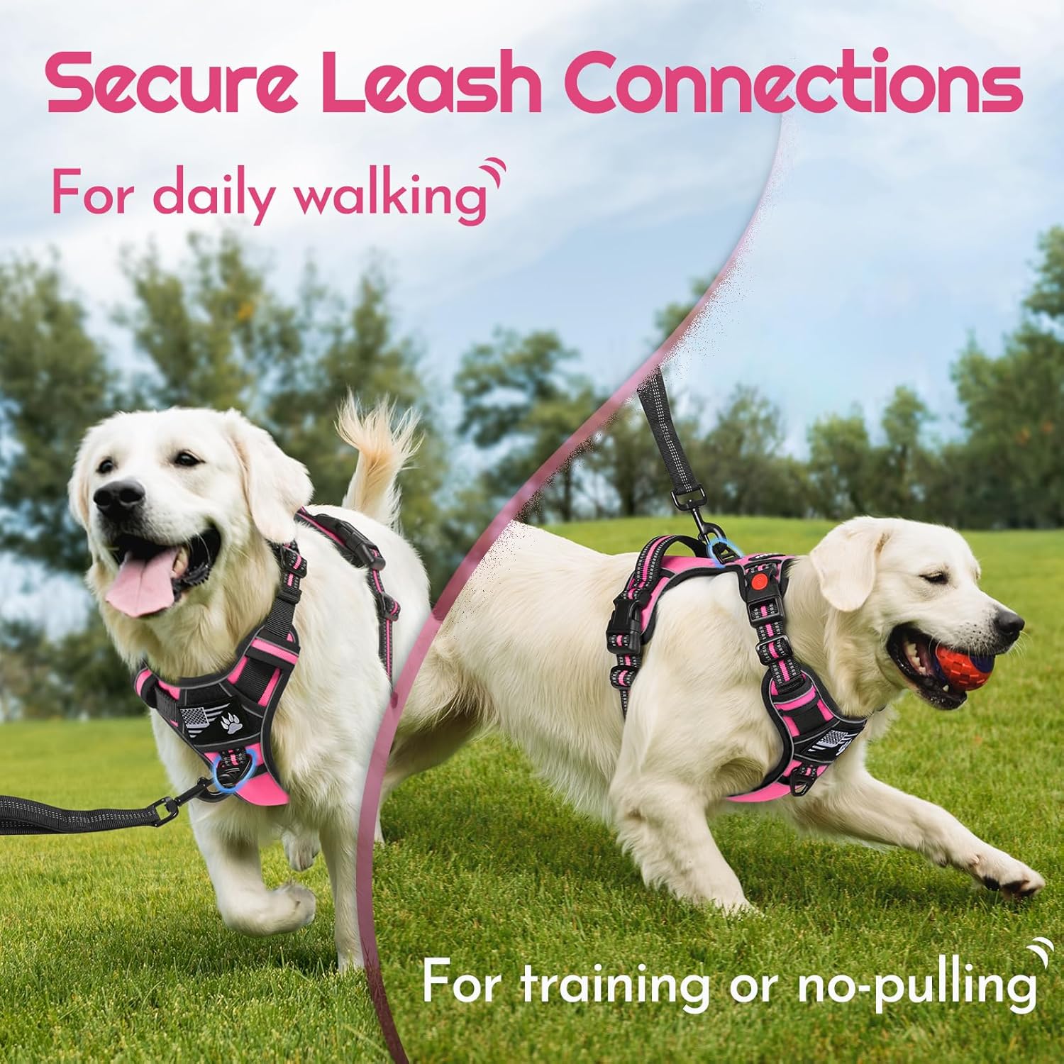Eagloo Dog Harness Medium Sized, Easy Wearing with 3 Buckles, Adjustable No Pull Pet Harness with 2 Rings for Walking, No Chock Reflective Soft Padded Vest with Control Handle, Pink & Black, M