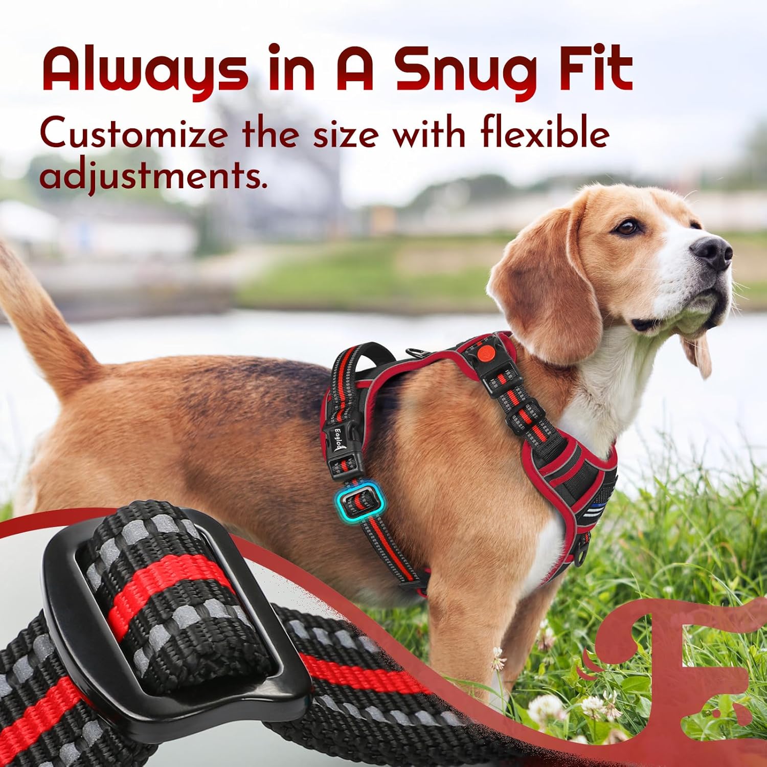 Eagloo Dog Harness for Large Dogs, Easy Wearing with 3 Buckles, Adjustable No Pull Pet Harness with 2 Rings for Walking, No Chock Reflective Soft Padded Vest with Control Handle, Black & Red, XL