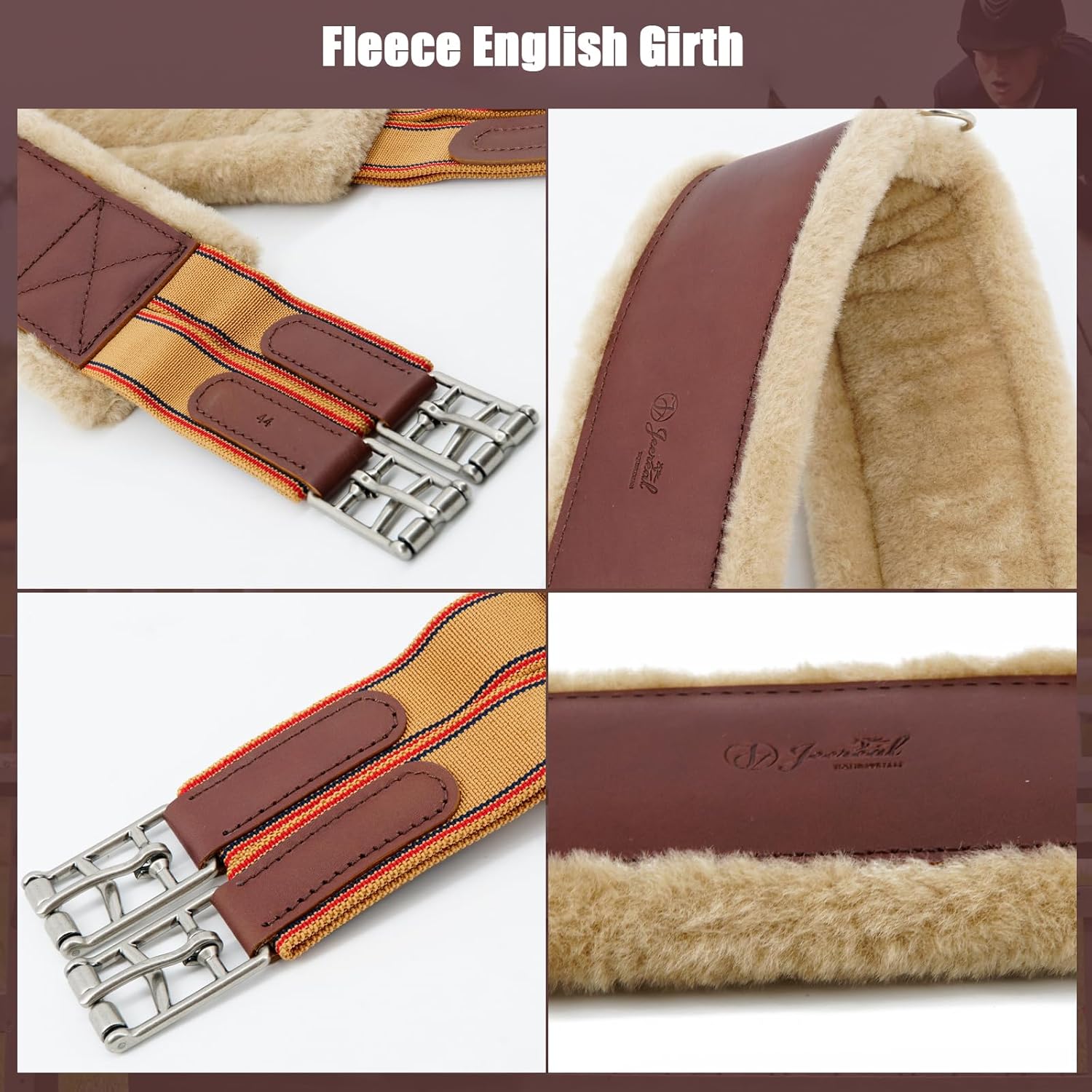 • Fleece English Girth: Features double heavy-duty elastic for a secure and comfortable fit.Micro-stretch for a better fit to adapt to the English saddle and protection to keep the horse's belly from getting hurt.