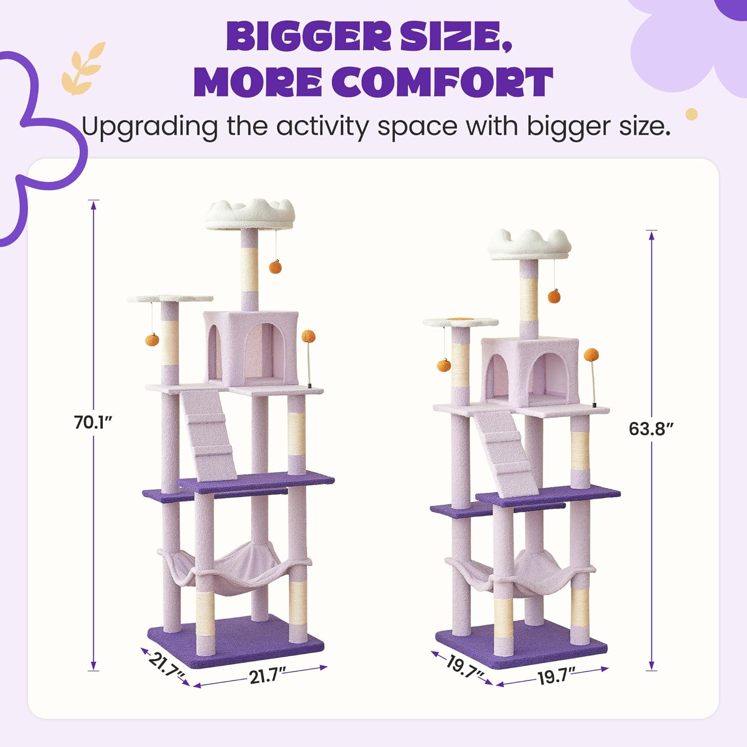 MWPO Flower Large Cat Tree, 70.1-Inch Multi-Level Tall Cat Tower for Indoor Cats, Plush Cat Condo with Big Padded Perches, Sisal-Covered Scratching Posts, Hammock, Toys for Kittens & Cats