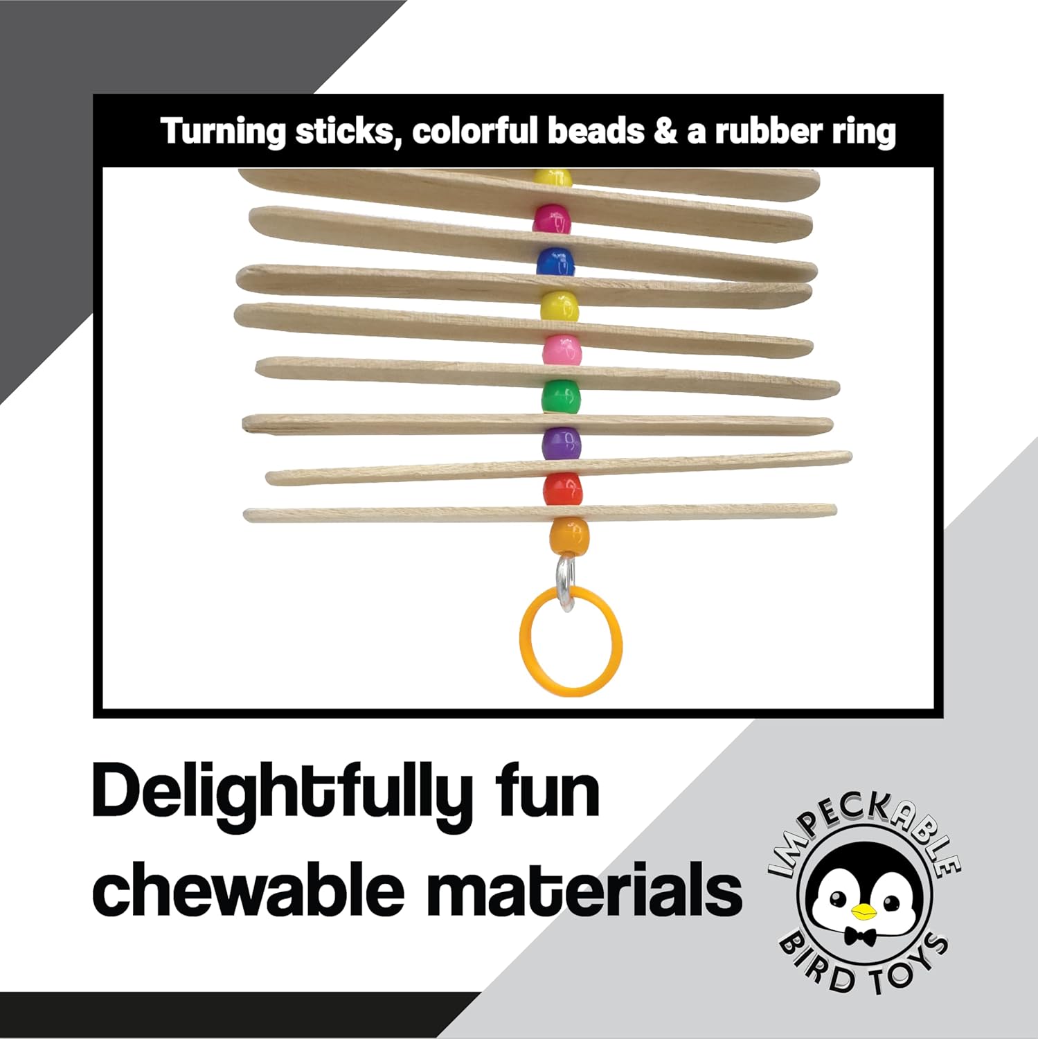 858 Mini Long Stick Toy - Handcrafted with Wooden Slats, Plastic Beads and Rubber Ring, Sticks Turn Around as Pets Play, Great for Budgies, Lovebirds, Parrotlets and Other Small Birds