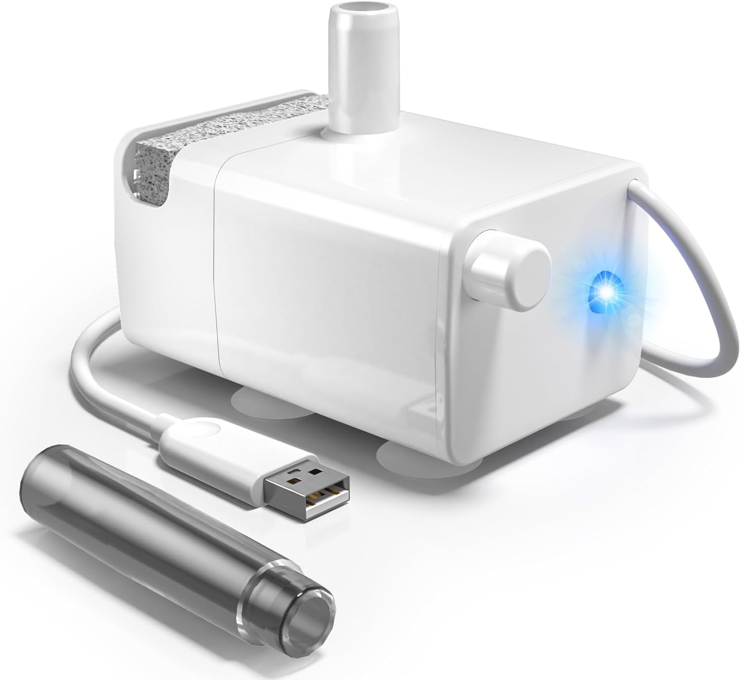 - Equipped With LED: This pump is designed with LED indicator light. When the water enough, LED is blue, the beautiful blue light lets you to clearly see the water level in the bowl! No more guessing if they have enough water. When red is on, you need to add water.