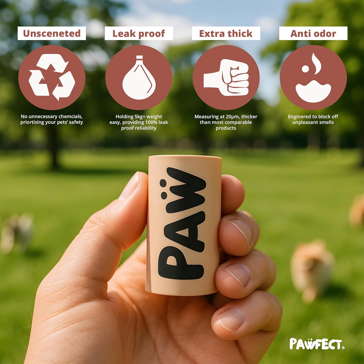 - π¬π§ TRUSTED UK BRAND: PAWFECT is a brand registered in the UK. We offer premium-quality dog bags for poop biodegradable, combining sustainability with everyday convenience.