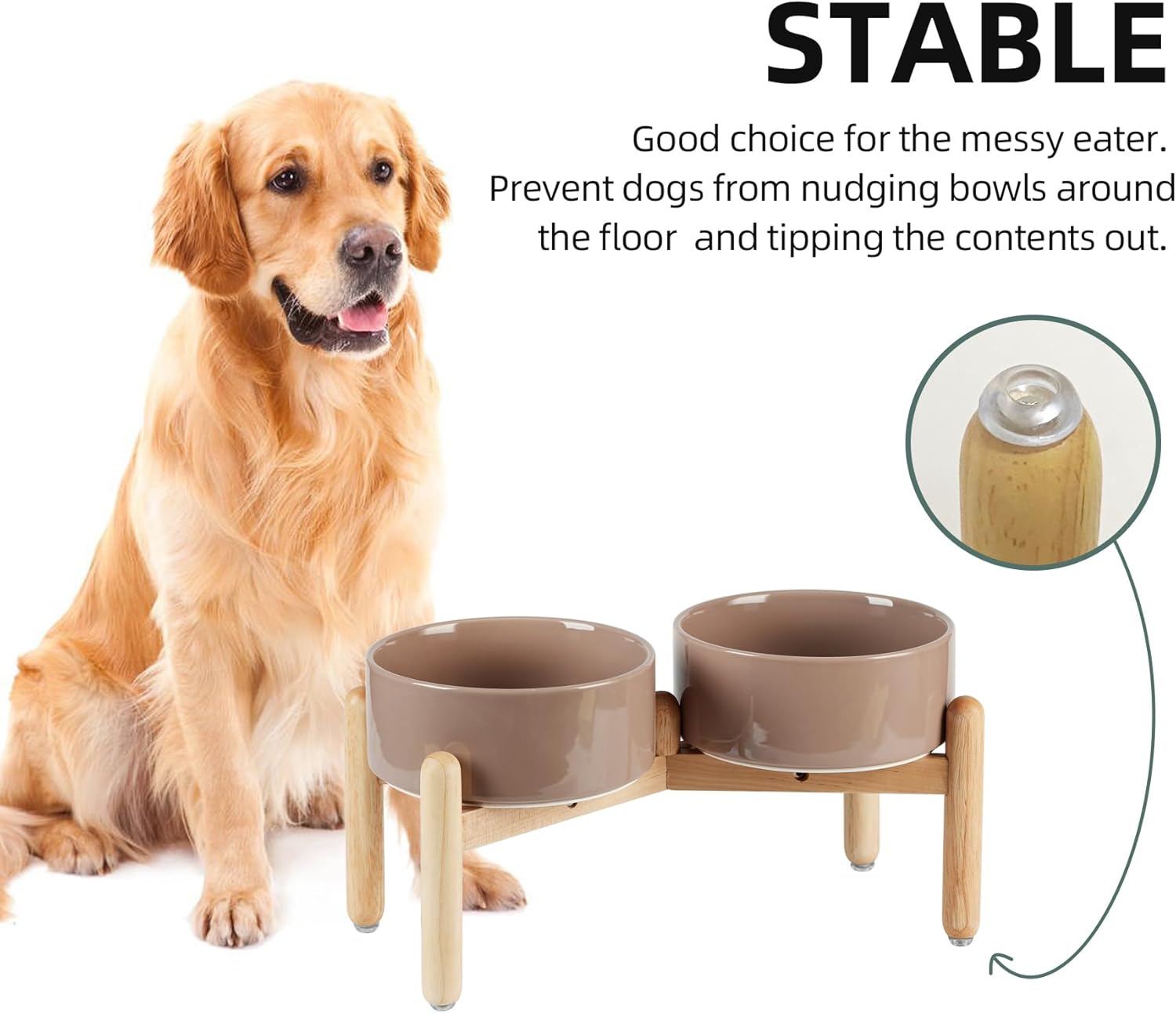 - Raised Wooden Stand: Raised ceramic dog bowls provide dogs with correct eating posture, improves reducing bloating and neck strain, and prevent indigestion problems.